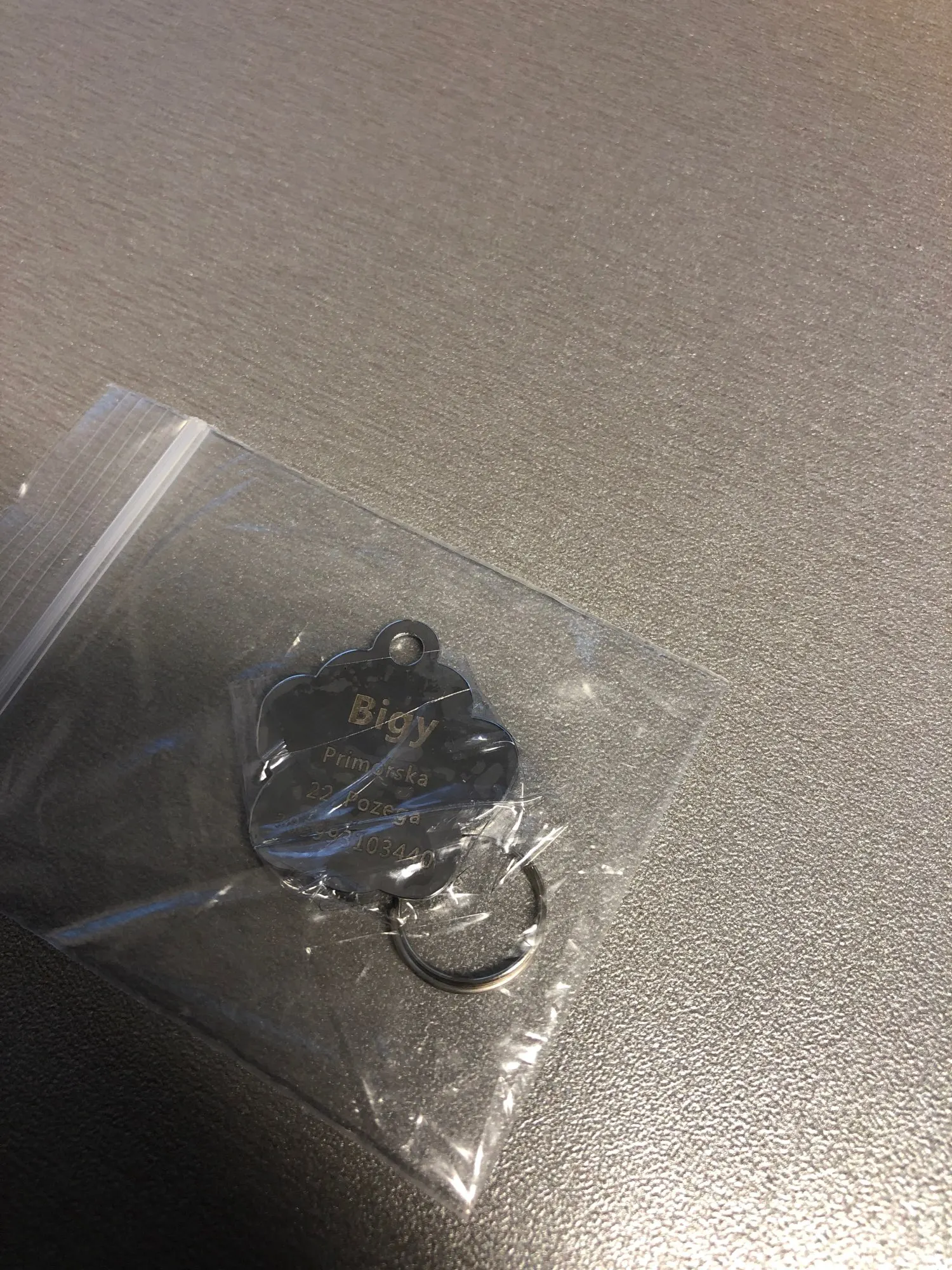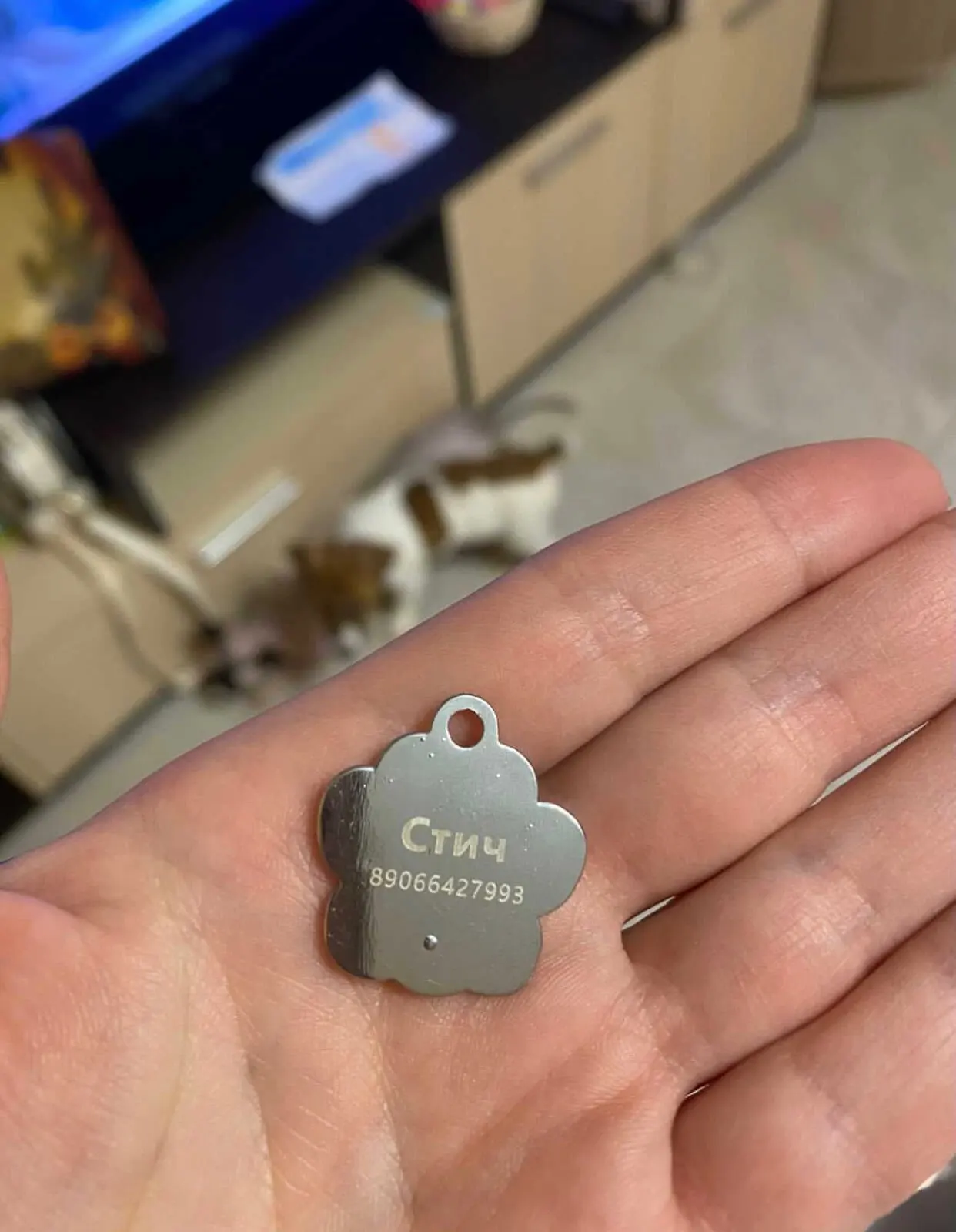 Брелок суперский, продавец по моей просьбе сделал гравировку клички и наши телефоны, за что продавцу огромное спасибо. РЕКОМЕНДУЮ МАГАЗИН, ВАМ ВСЕ ПОНРАВИТСЯ.