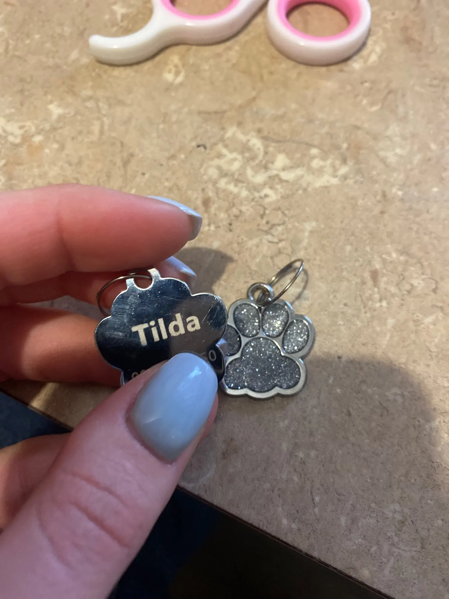 Отлично, медаль была выгравирована с именем моего Чихуахуа и моим номером телефона, как указано при заказе.