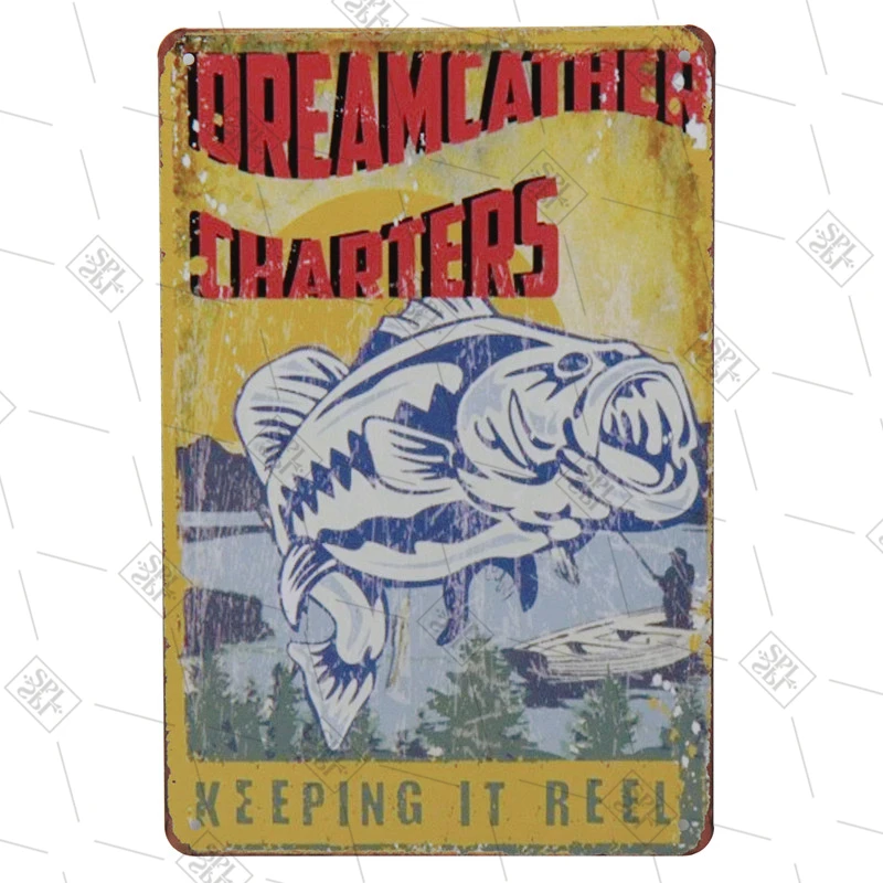 Рыболовный знак Ретро Рыбалка металлический знак папин Рыбалка Бадд...