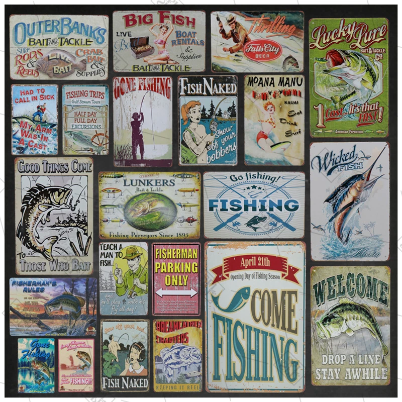 Металлическая табличка для рыбалки, рыболовная придверная табличка,...
