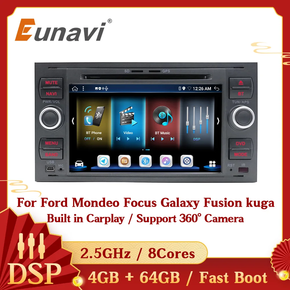 Eunavi 2 DIN Android 10 автомобильное радио DVD Мультимедиа GPS для Ford Focus Mondeo S-max C-MAX Galaxy Fiesta transit Fusion Connect kuga