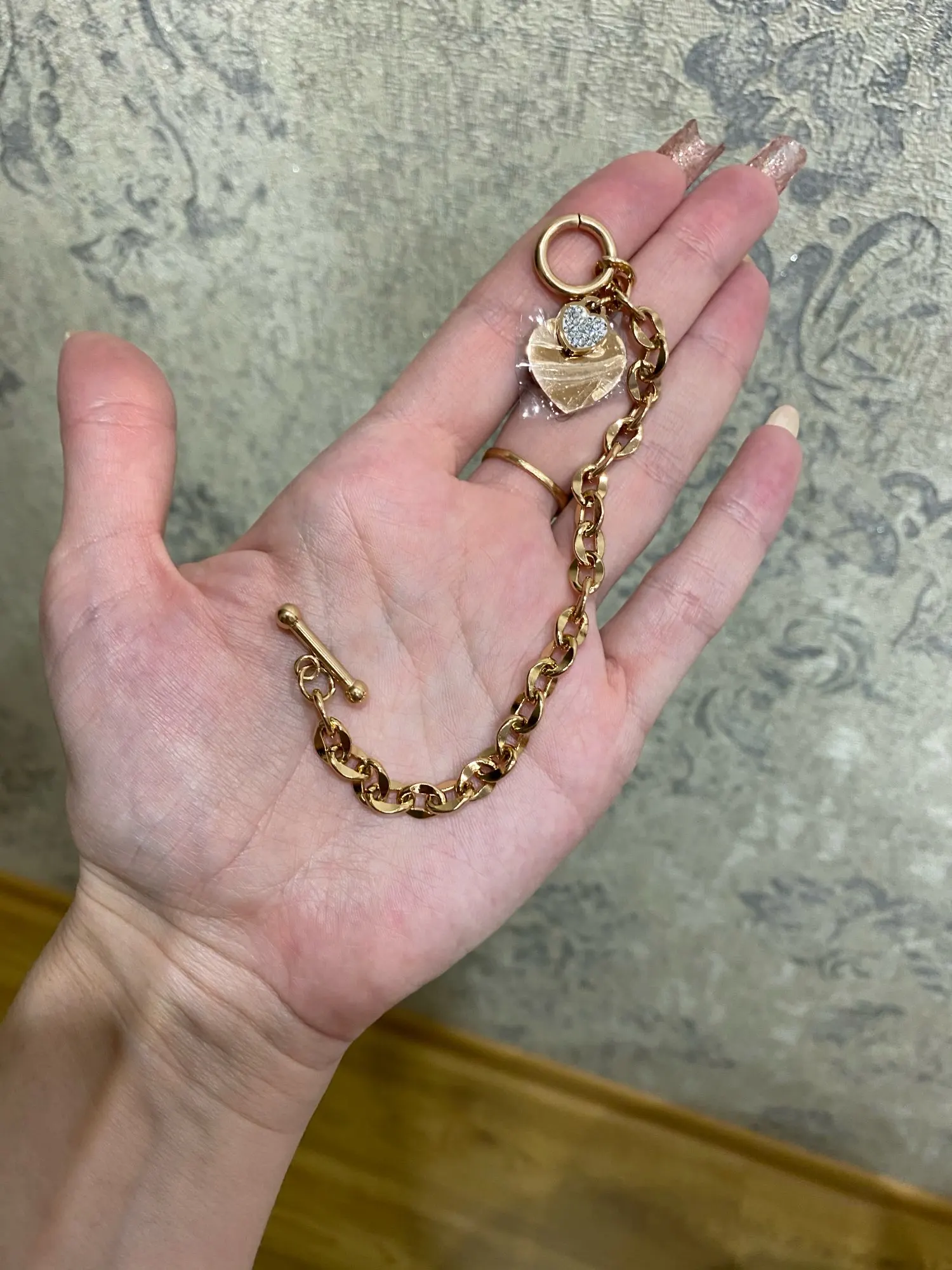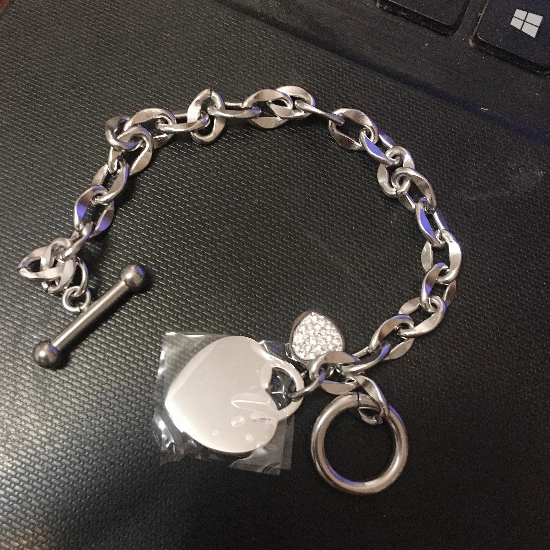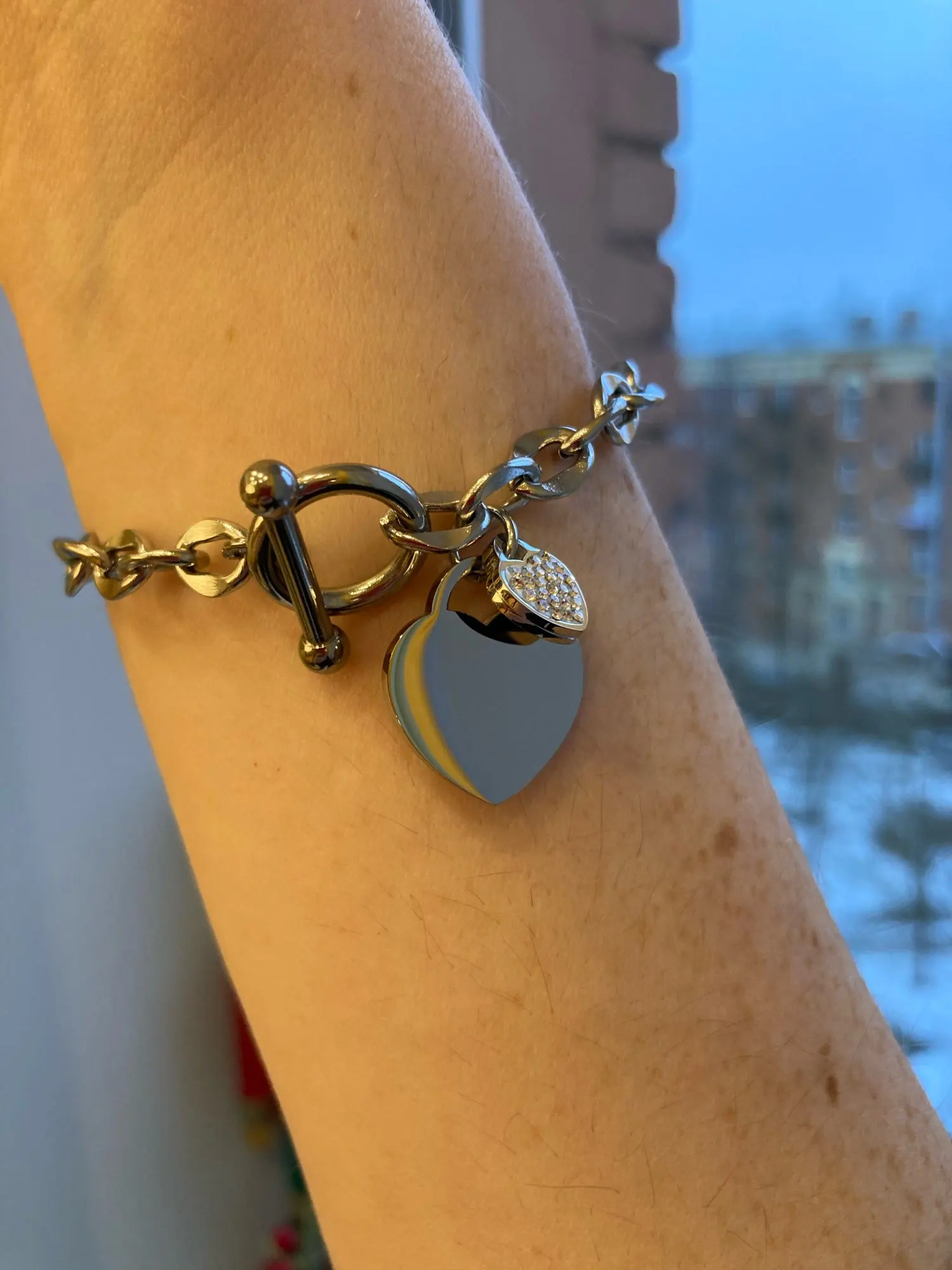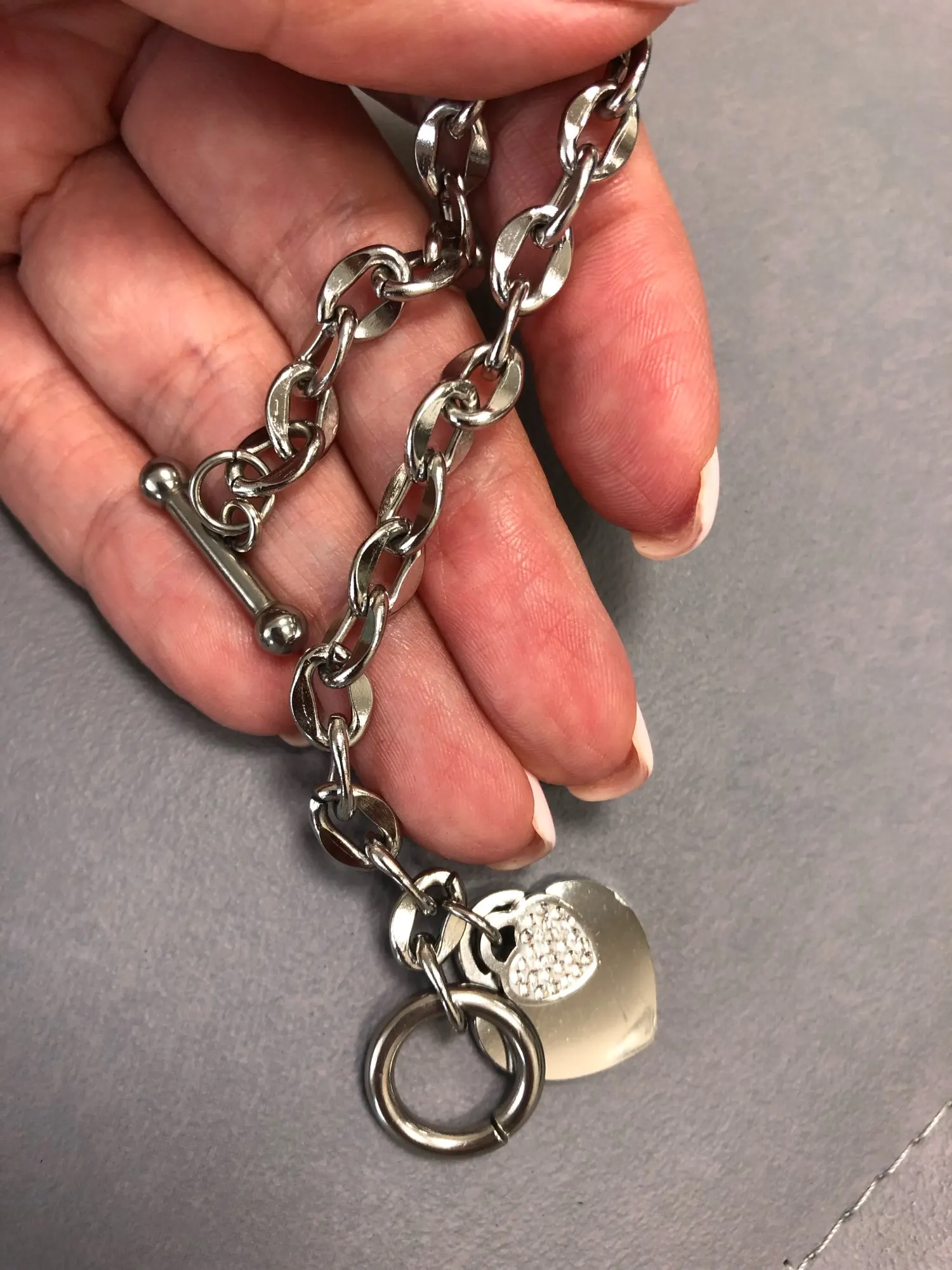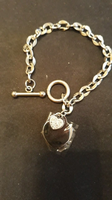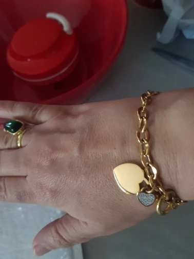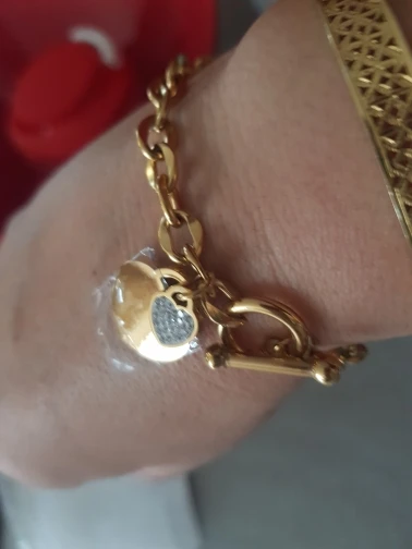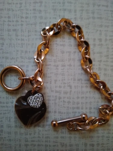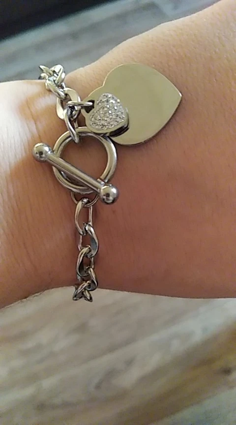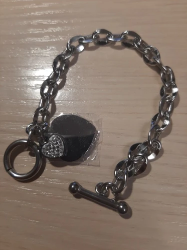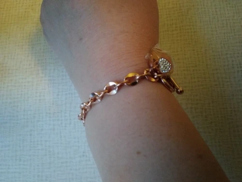 Красивый браслет, необычные звенья в цепи, замок стильный, хотя будьте внимательны при носке, такие могут растегиваться в самый неподходящий момент, было у меня так несколько раз. Подвеска состоит из двух сердец, одно красивое зеркальное отпалировано красиво, но при носке неделю на нем конечно уже царапины, этого не избежать. Второе сердце меньше и со стразами, смотрится мило. В целом к покупке рекомендую, достойно выглядят за свою цену, спасибо продавцу. Доставка за месяц, хорошо все упаковано.