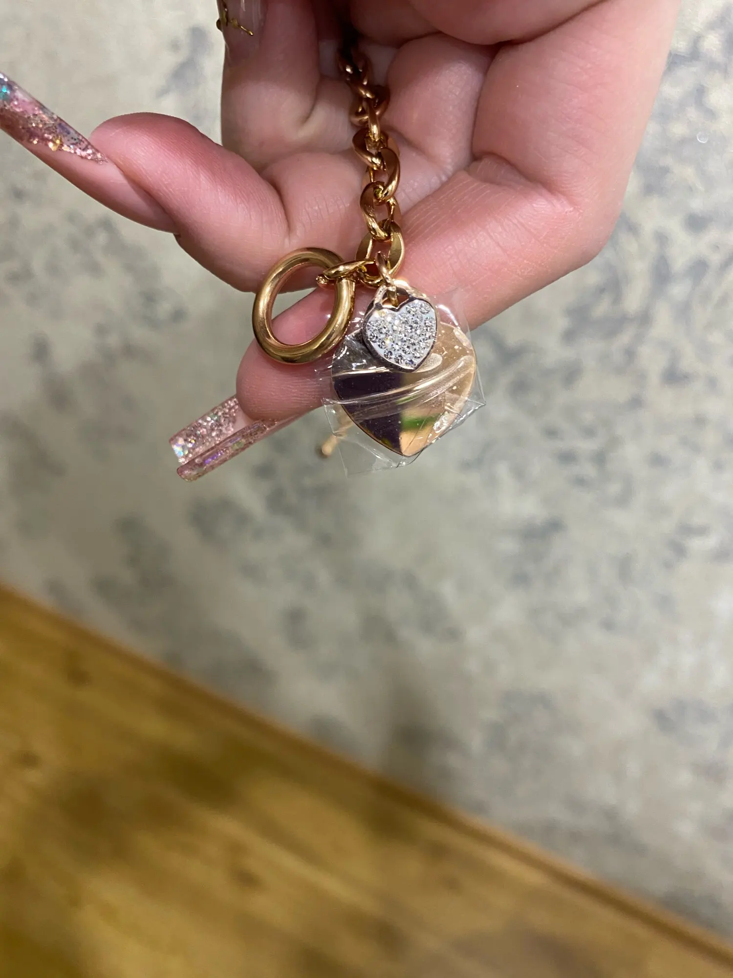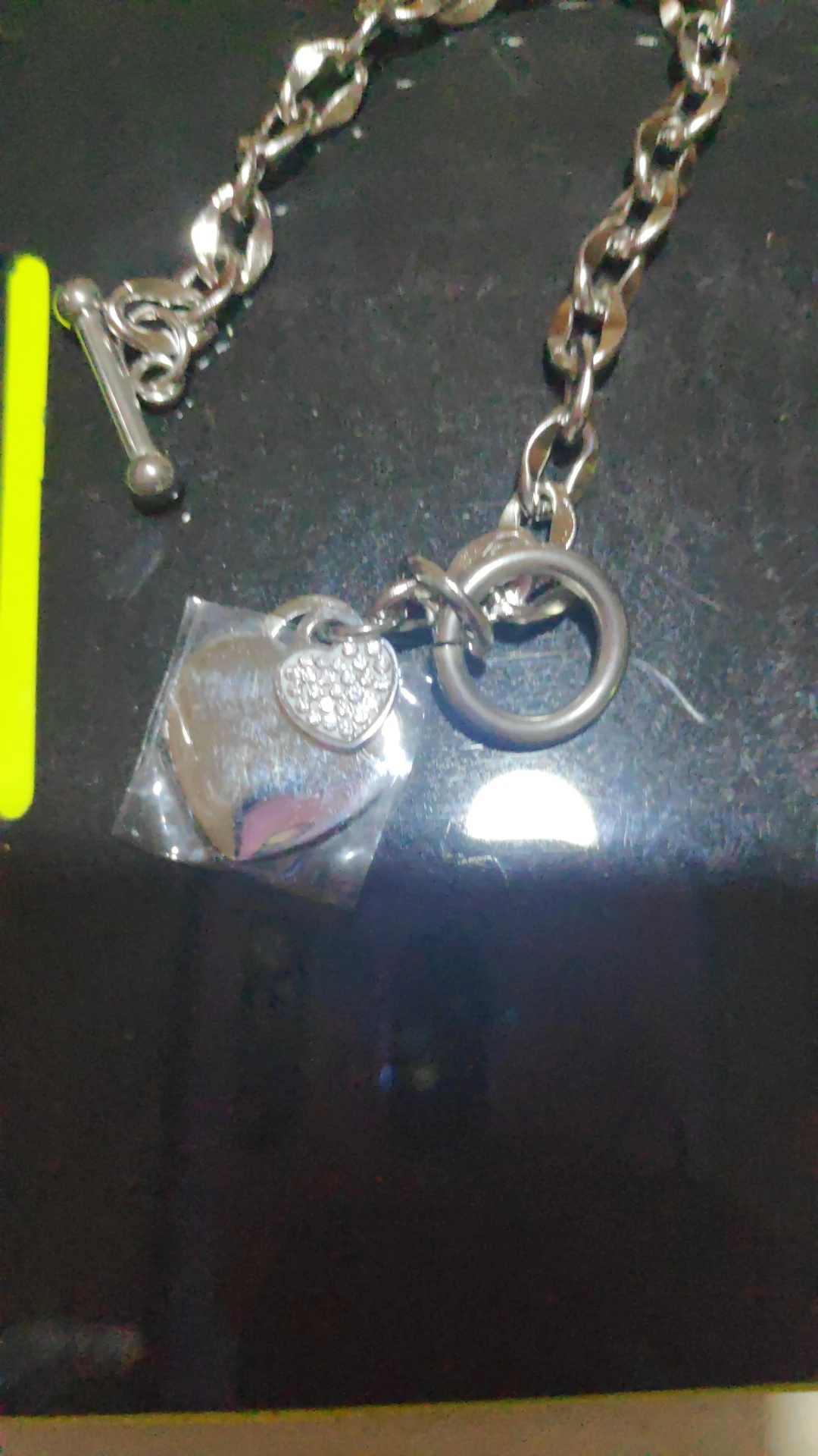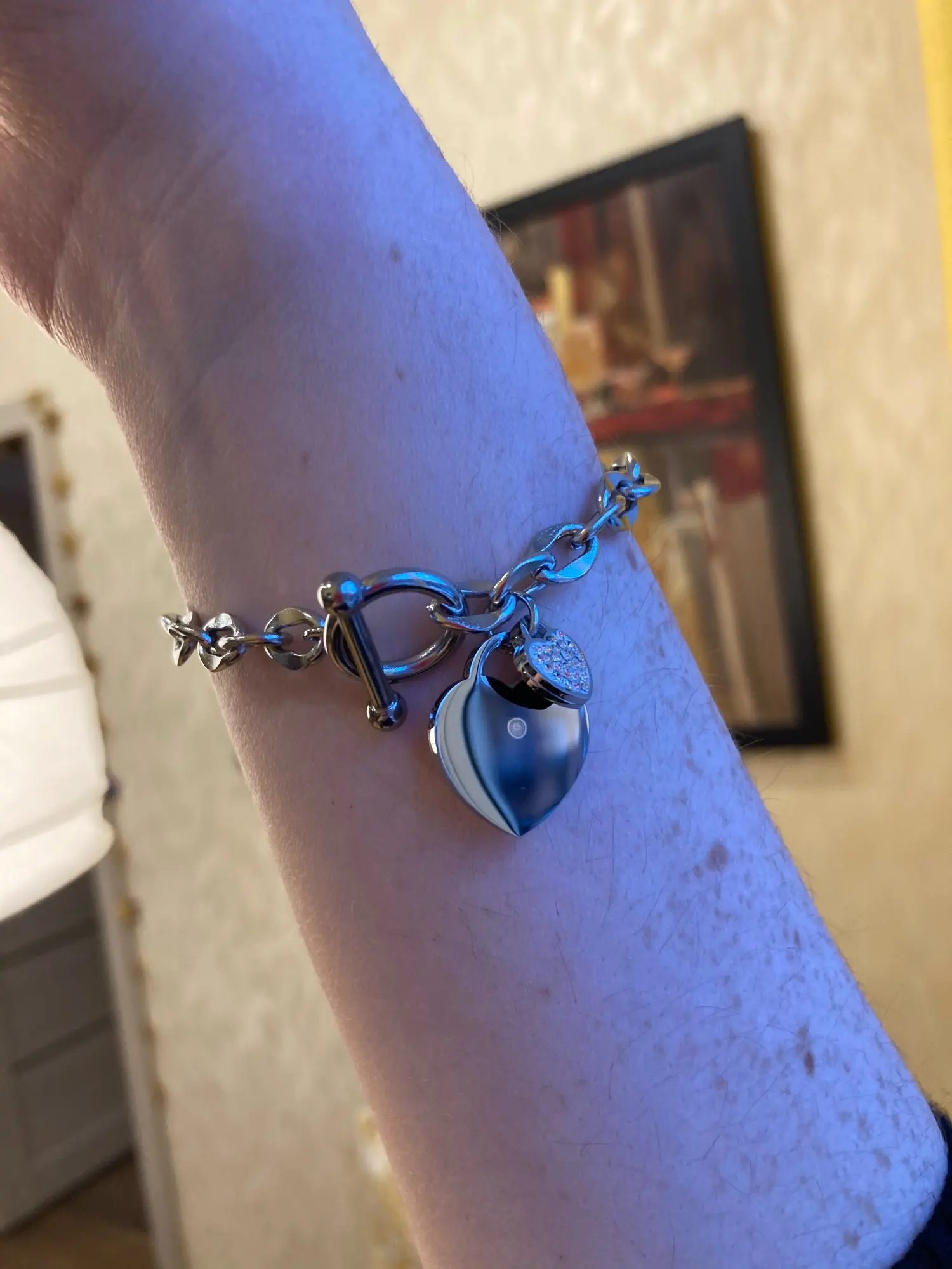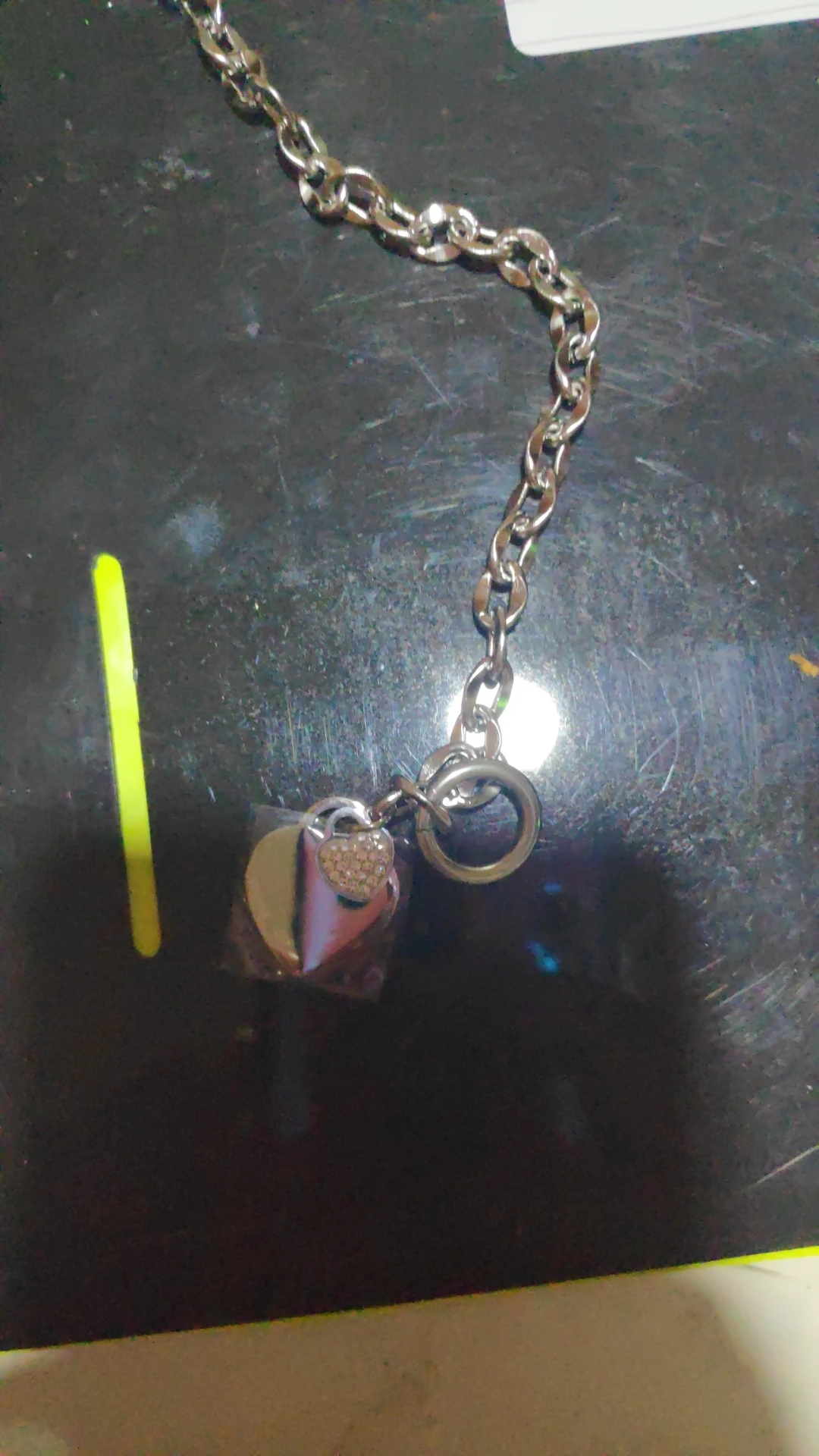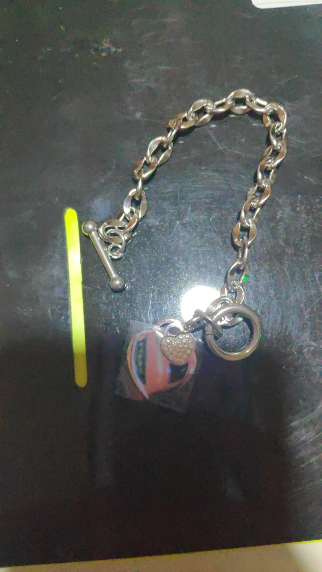 Красивый браслет, необычные звенья в цепи, замок стильный, хотя будьте внимательны при носке, такие могут растегиваться в самый неподходящий момент, было у меня так несколько раз. Подвеска состоит из двух сердец, одно красивое зеркальное отпалировано красиво, но при носке неделю на нем конечно уже царапины, этого не избежать. Второе сердце меньше и со стразами, смотрится мило. В целом к покупке рекомендую, достойно выглядят за свою цену, спасибо продавцу. Доставка за месяц, хорошо все упаковано.