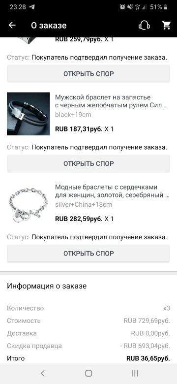 У продавца была большая скидка, договорились на 1 украшение вместо 3х. Украшения У продавца красивые, выглядят стильно. Браслет понравился, спасибо!