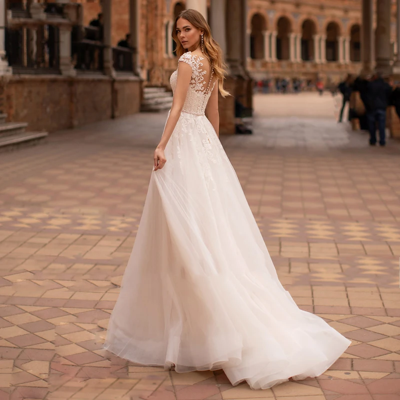2022 тюлевые свадебные платья принцессы А-силуэта с кружевной аппли...