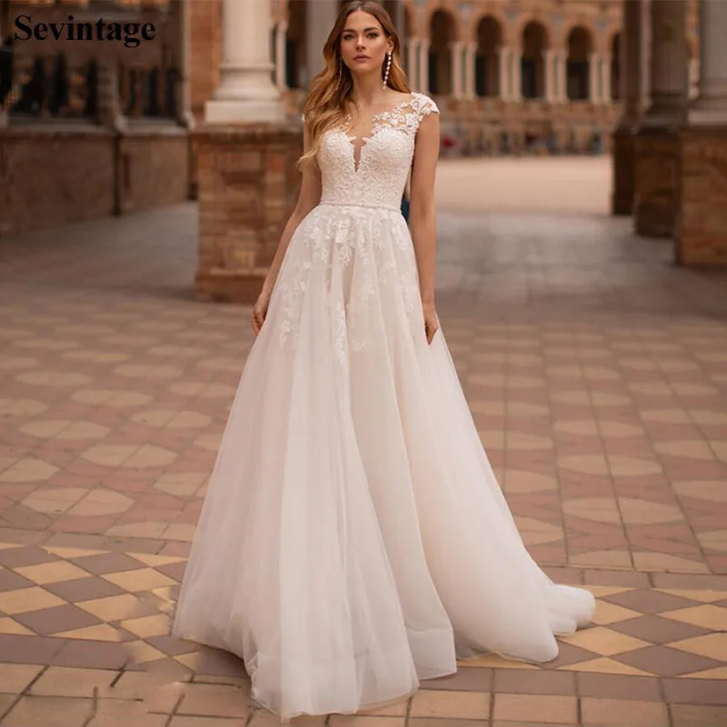 Женское свадебное платье Sevintage, полупрозрачное платье невесты в богемном стиле с кружевной аппликацией и бисером, на пуговицах, 2020
