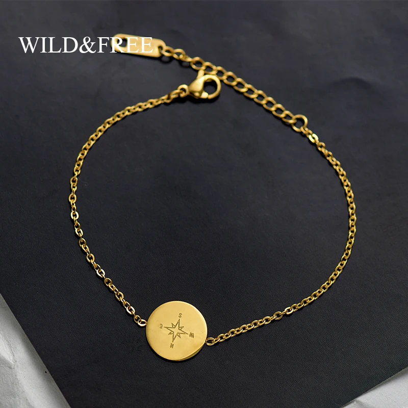Wild Free, нержавеющая сталь, браслет для женщин, простой золото звено цепи круглый браслеты с подвесками браслеты ювелирные изделия подарок любовника