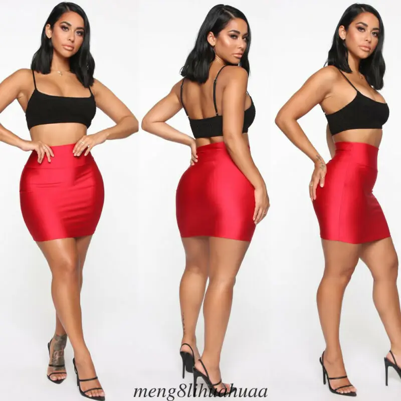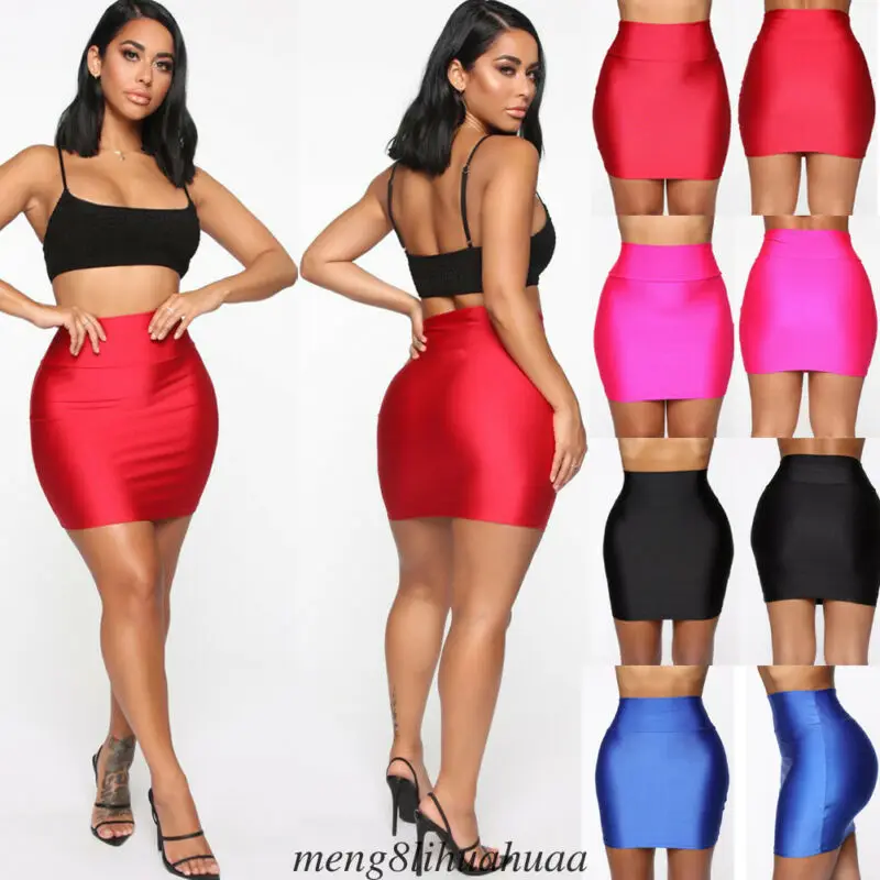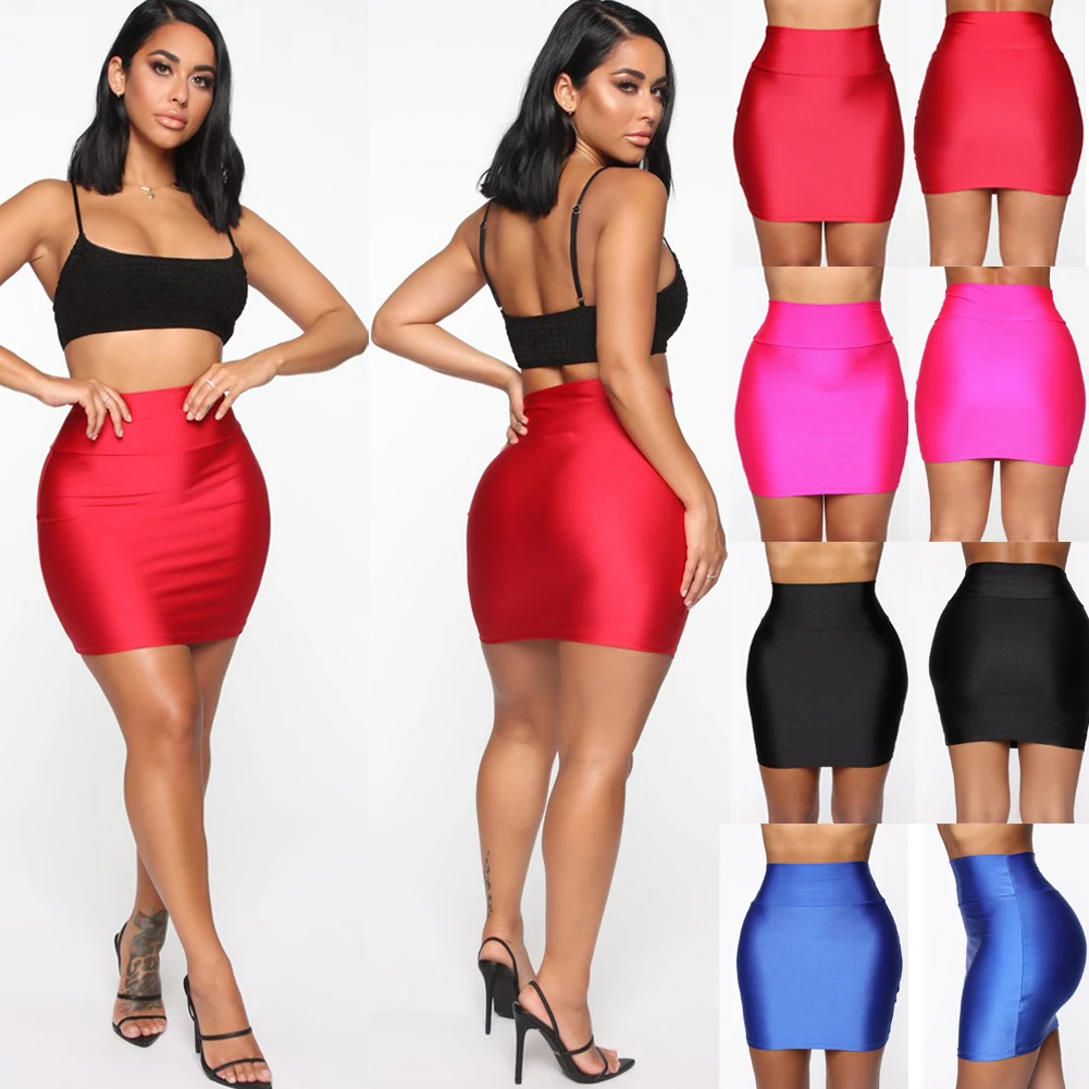 Женская сексуальная яркая короткая юбка с эластичной высокой талией, облегающая короткая мини-юбка, Клубная одежда, вечерние костюмы, уличная одежда