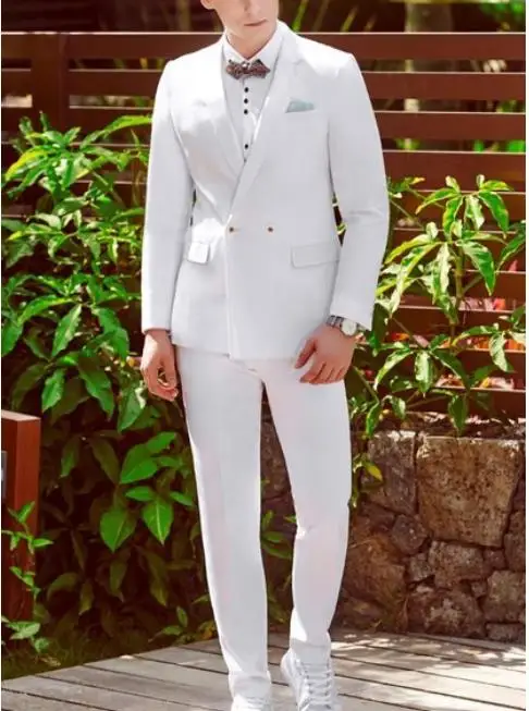 Элегантный двубортный белый мужской костюм, мужские смокинги для свадьбы, ужина, вечеринки, стильный мужской костюм (пиджак + брюки + Бант)