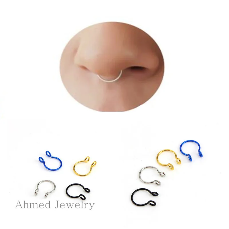 Модные ювелирные изделия, 4 цвета, U-образное кольцо для носа, кольцо, перегородка, титановые серьги для пирсинга носа, поддельные ювелирные изделия для пирсинга