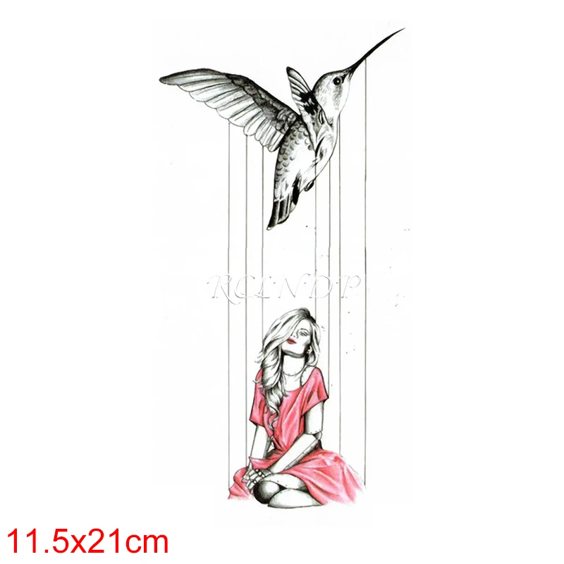 Водостойкая Временная наклейка для татуировки, птица Колибри, сексуальная красная юбка, девушка, линия, Эле, мужчины, t, поддельные тату, флеш-тату для женщин и мужчин