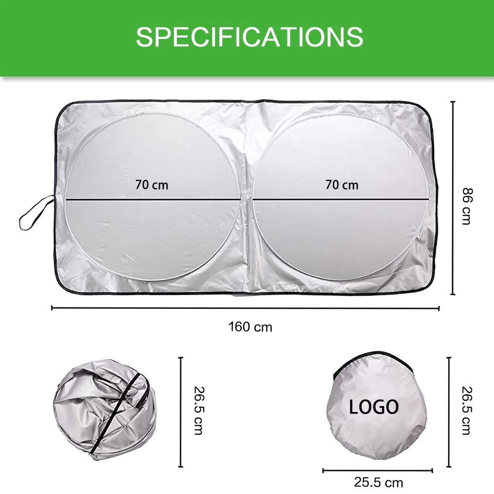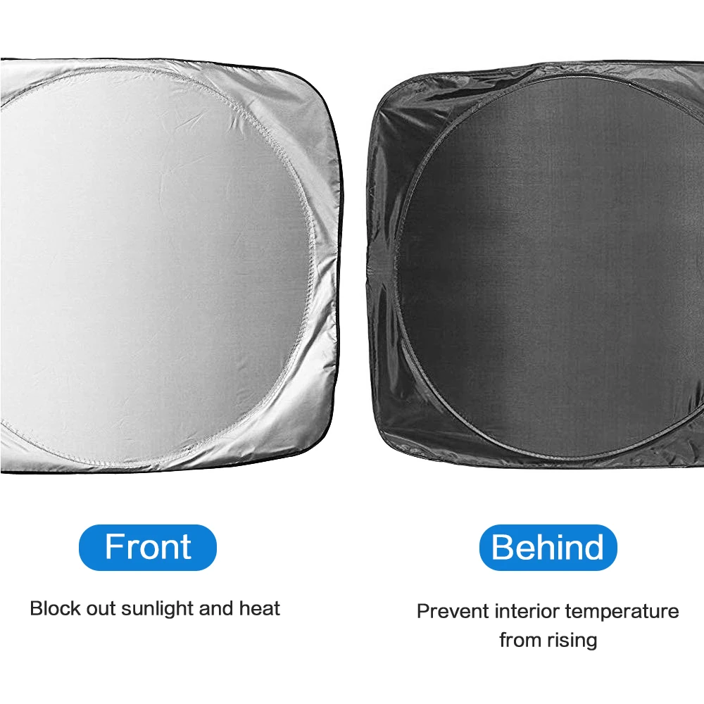 Название продукта: солнцезащитный козырек для автомобиляПодходит для: переднего и заднего ветрового стеклаМатериал: светоотражающий и прочный с складной металлической рамкойЦвет: черный + серебристыйРазмер: 62,99 дюйма x 33,86 дюйма/160 см x 86 см