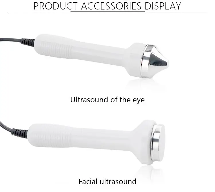 Характеристики продуктаНазвание: Ультразвуковой косметический инструментНапряжение: 110 В/220 ВЧастота: 50 ~ 60 ГцМощность: 25 ВтВес брутто: около 2 кгЗонды: большой для тела, маленький для глаз, самый маленький для пятенФункции:-Разглаживает морщины и укрепляет кожу.-Уменьшение отечности вокруг глаз.-Стимулирование кровообращения и Повышение метаболизма.-Отбеливающие черные пятна, веснушки и возрастные отметки.-Способствует усвоению средств по уходу за кожей.-Расслабляющие напряженные мышцы и уменьшение воспаления.-Улучшение скорости лимфатического потока.Ощущение прикосновения: это теплое ощущение. При прикосновении к поверхности головы, вы не можете почувствовать очевидную вибрацию, но слегка. Опускайте каплю воды на зонд, чтобы увидеть, что водяной шарик в очевидном ударе и распылении!Требования к жидким продуктам: продукты, которые требуют определенной вязкости, такие как наличие раствора, эссенция, эфирное масло, мазь, гель.Примечание:1. Поддержание ультразвуковой очистки головки. Вдали от высокотемпературной воды для дезинфекции и легкой очистки с помощью хлопка.2. Сначала очищает место нанесения вашего тела, красит крем на части, чтобы избежать ультразвуковых головок от пустого горения. Паузы в течение нескольких минут после 30 минут использования для восстановления.3. Не помещайте ультразвуковую головку непосредственно в глазные яблоки.4. Перед обработкой удалите металлические часы и ювелирные изделия.5. Те, у кого есть сердечно-сосудистые заболевания или чувствительная кожа, не подходят к машине.6. Не используйте на одной и той же части кожи слишком долго и дискомфорта кожи, пожалуйста, прекратите использовать его немедленно.