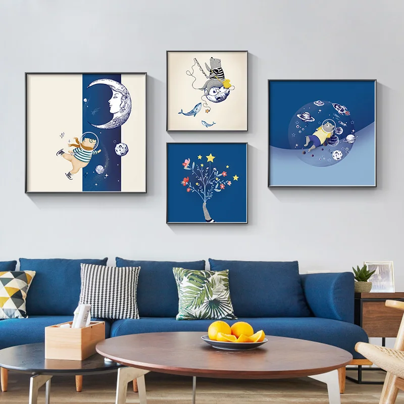 Постеры в скандинавском стиле с изображением мишки в космосе, для детской комнаты, для гостиной, спальни, детского сада
