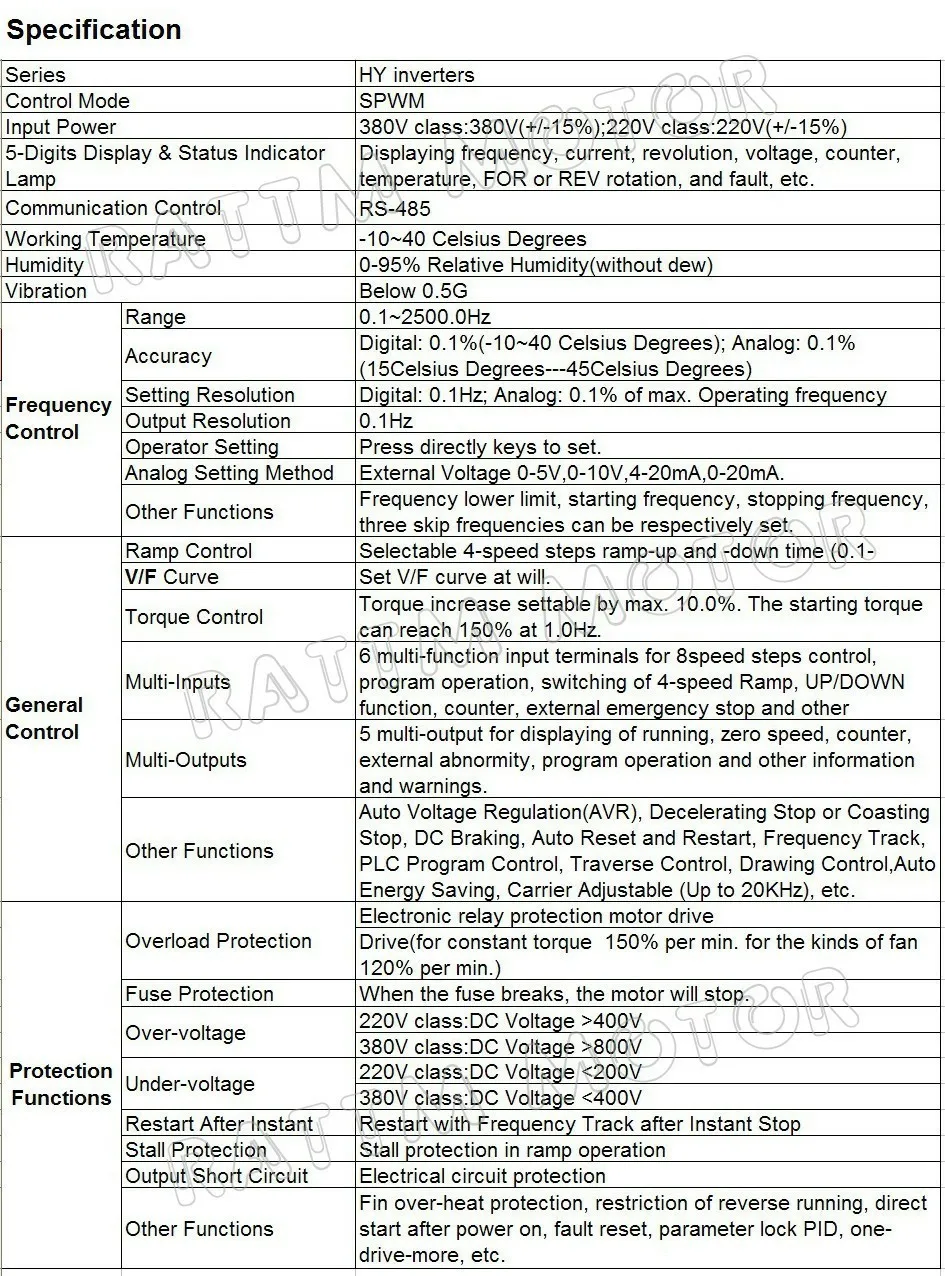 5) Низкая Выходная ratting torque0.5гц-150%, низкая скорость работы;