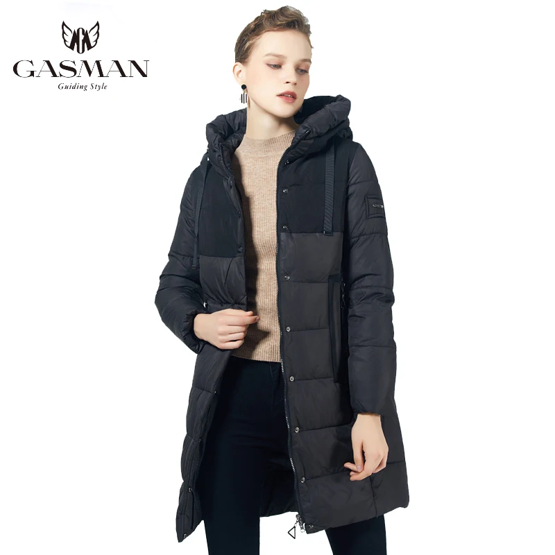 Куртка GASMAN на молнии, длинная, зимняя, женская, черная парка, пуховик, женское плотное пальто с капюшоном, женская одежда, теплое, осеннее пальто, 17616