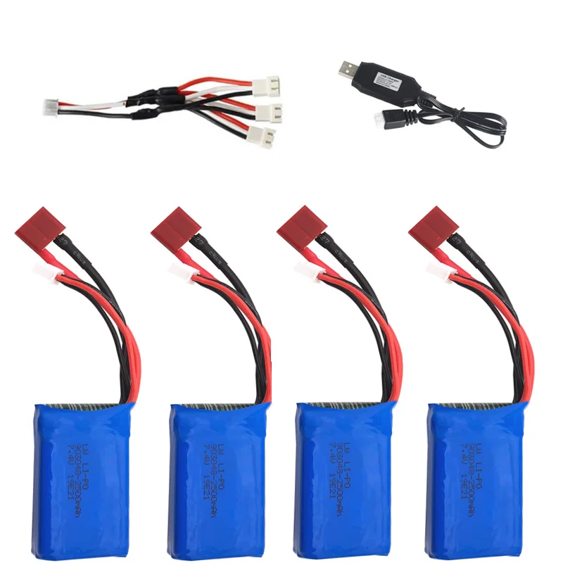 Литий-полимерный аккумулятор высокой емкости 7,4 в 2500 мАч + кабель (4 в 1)+ зарядное устройство для Q39 Wltoys A959-B A969-B A979-B K929-B запасные части для радиоуправляемого автомобиля