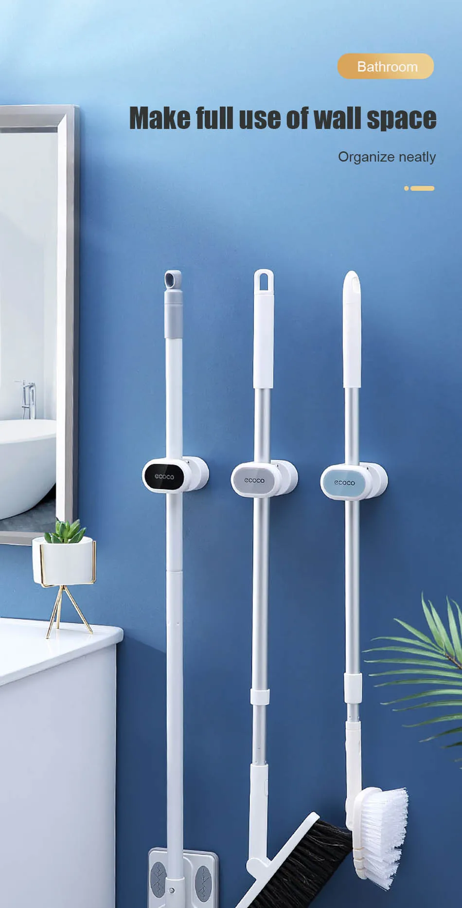 Features 4Mop Rack For Bathroom Kitchen