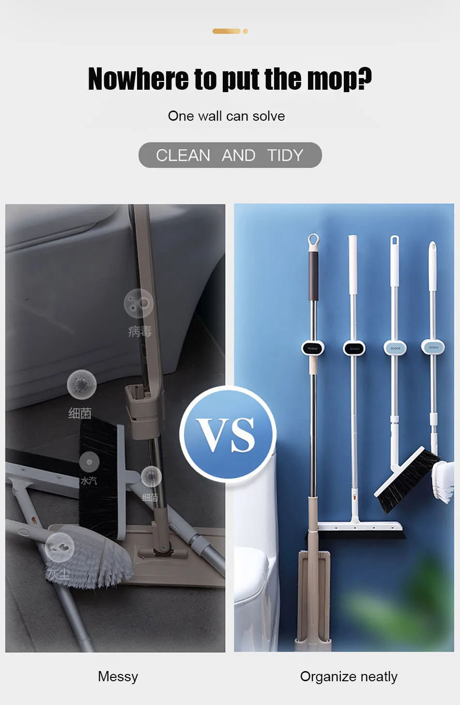 Features 1Wall Mounted Mop Rack
