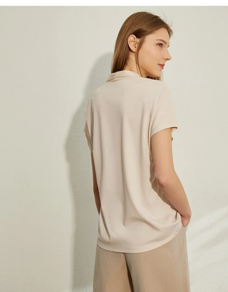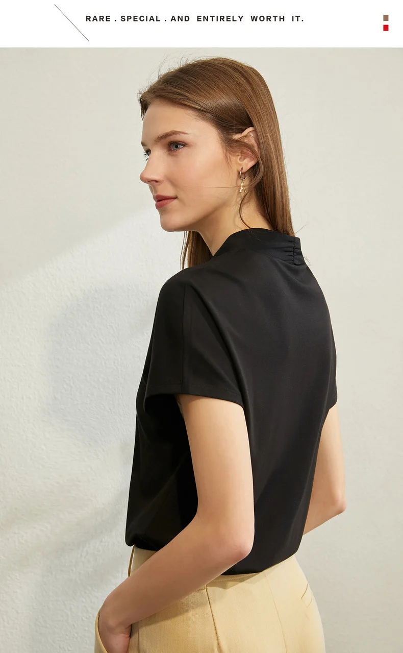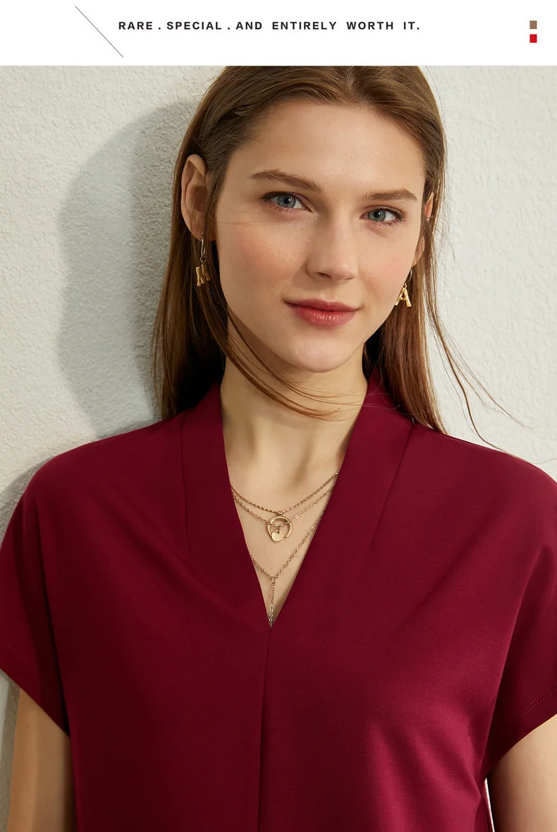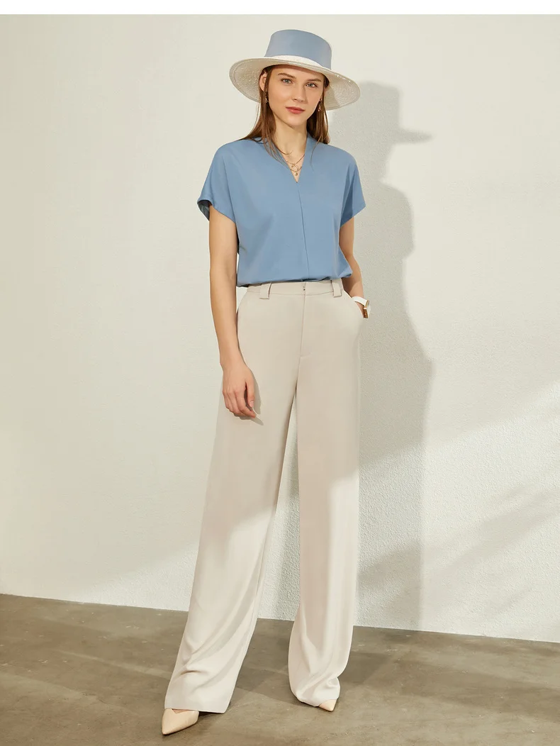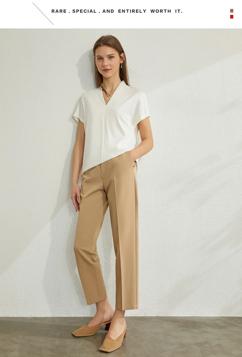 AMII минимализм; Сезон весна-лето; Шифоновые однотонные V образным вырезом Свободная Женская блузка на каждый день Повседневная рубашка с короткими рукавами Блузка 12060068