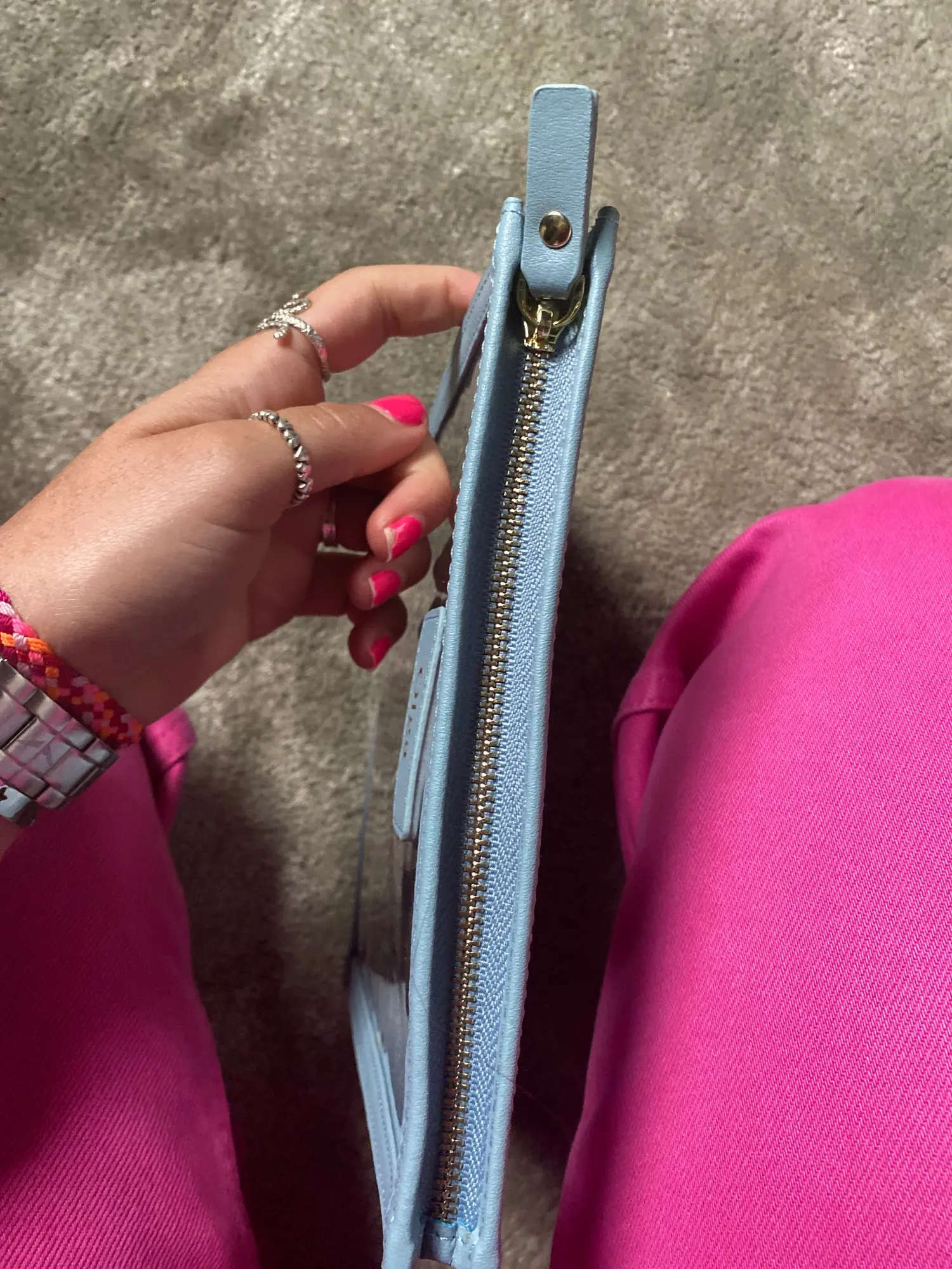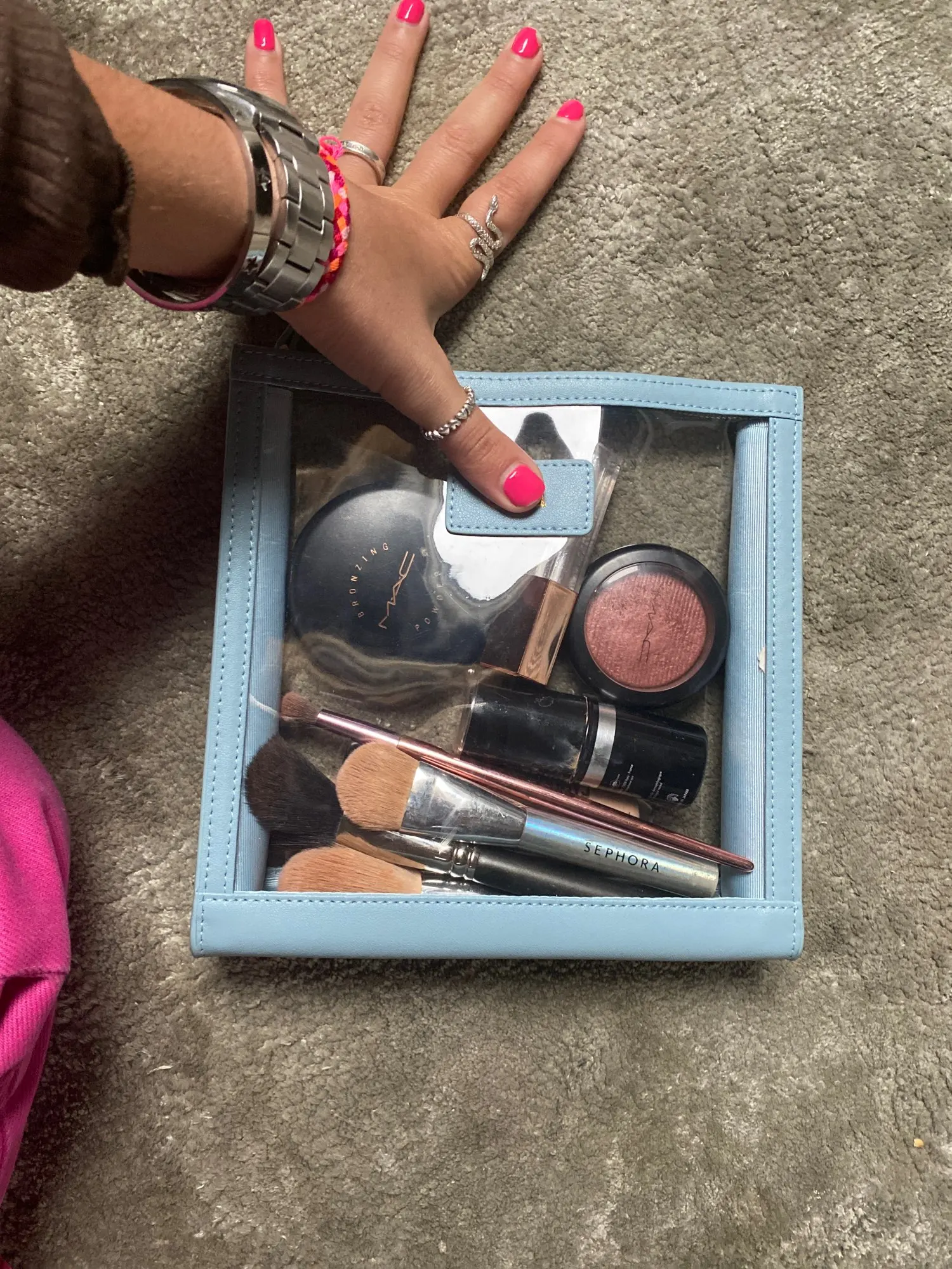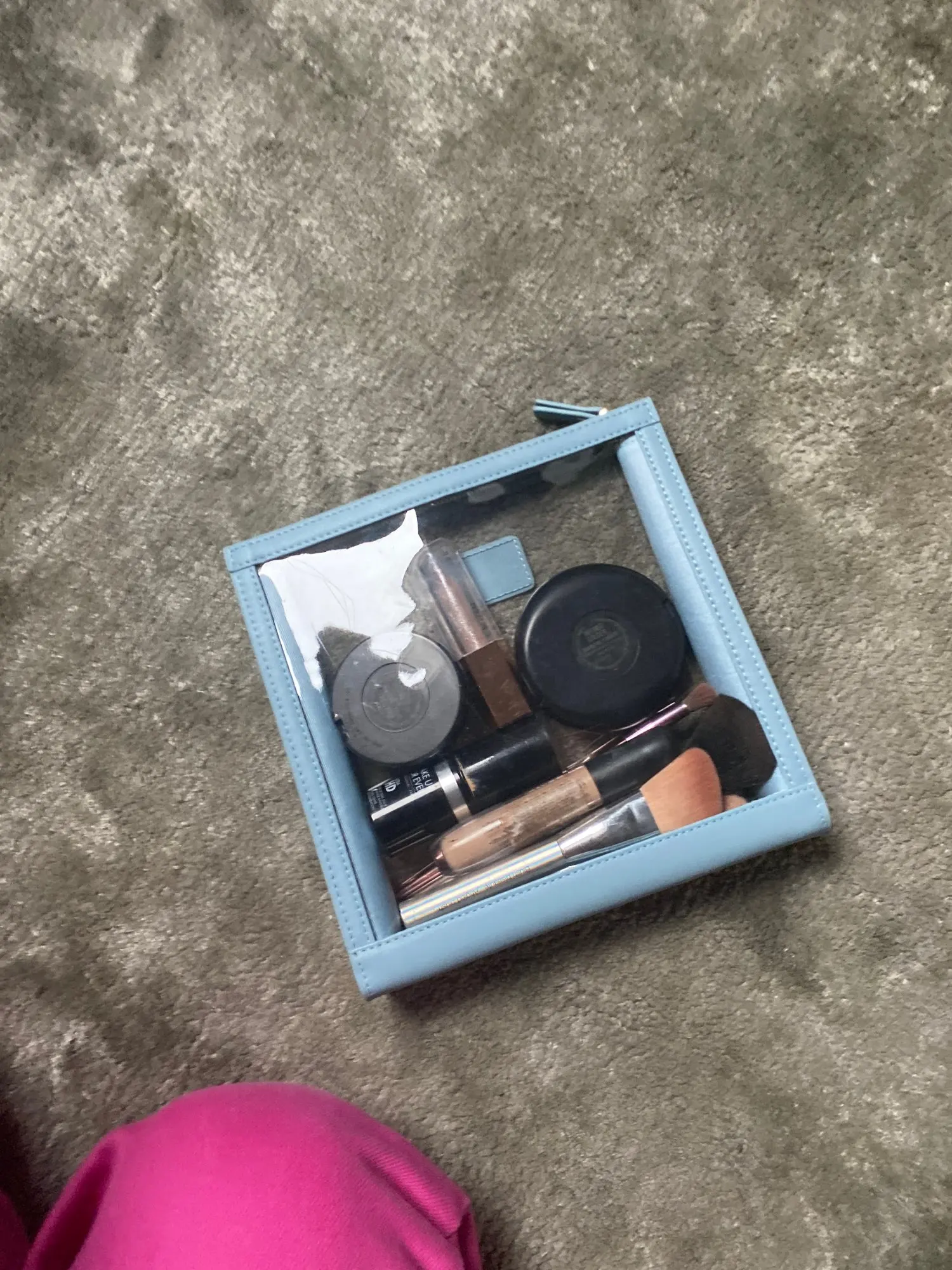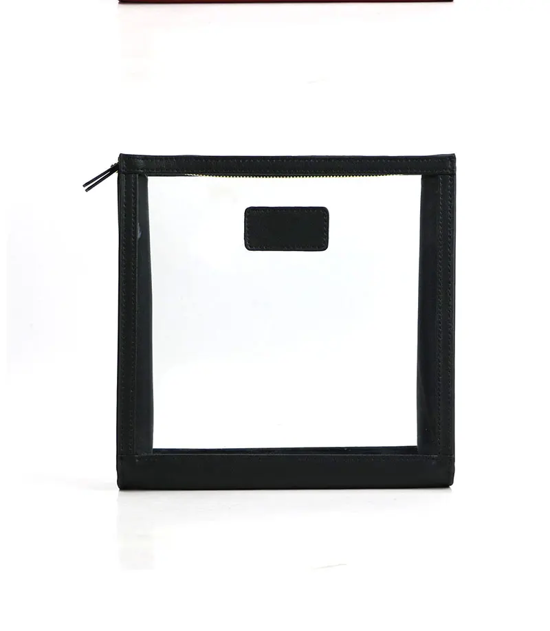 Коровья кожа очень хорошая. Глубокий отсек и гладкая молния. Сверхмощный ПВХ. Это будет TSA quart Размер совместимый, но почти слишком приятно использовать. Хорошо для макияжа, много применений.
