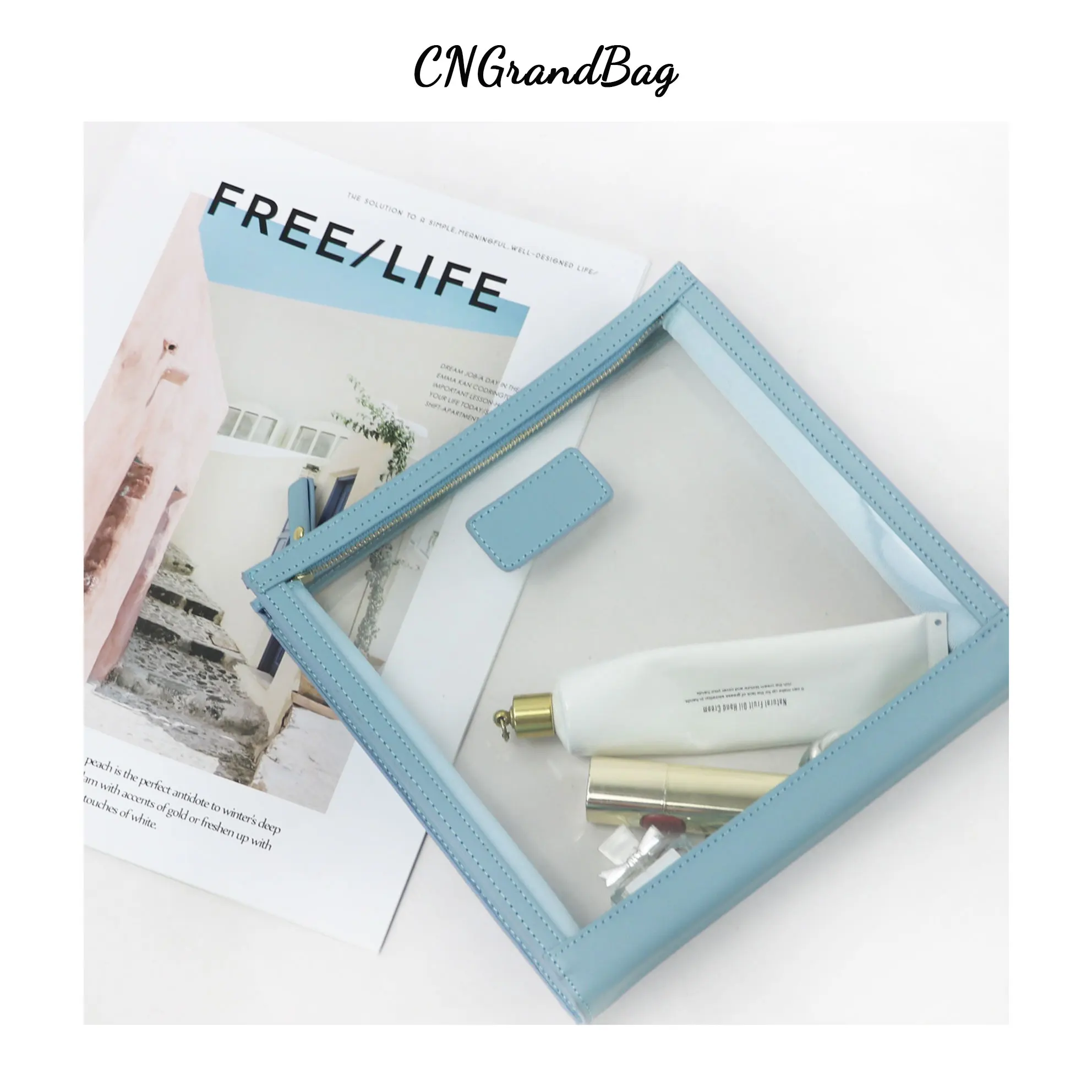 Прозрачные сумочки для умывания из коровьей кожи, дорожный органайзер, прозрачная косметичка, красивая косметичка, саквояж для туалетных принадлежностей