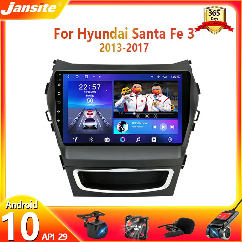 Автомагнитола Jansite на платформе Android 9 для Hyundai Santa Fe 3 Grand 2013-2017, мультимедийный проигрыватель, GPS-навигация, плавающее окно, Раздельный экран