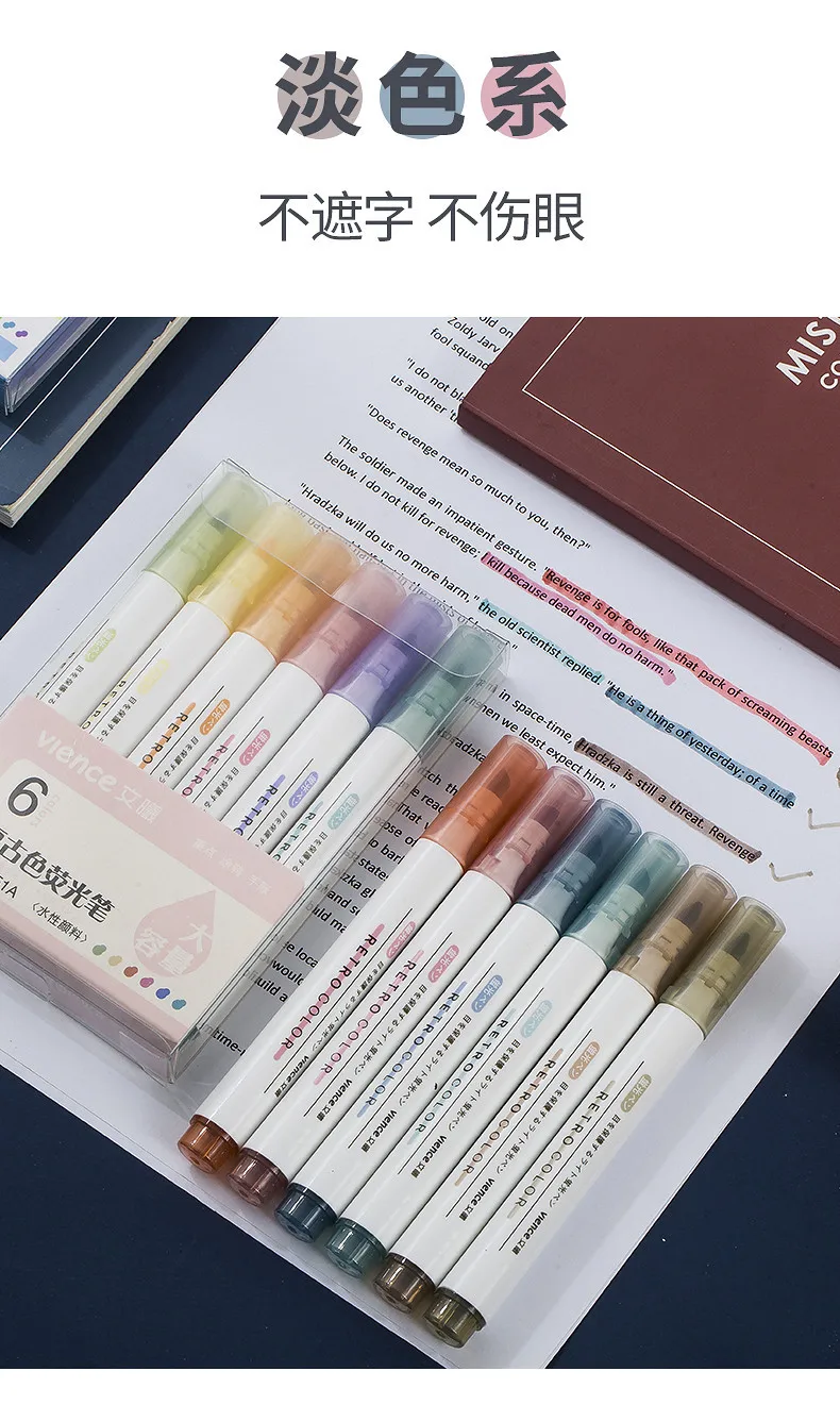 Маркеры в стиле ретро LITZY 6 шт.компл., кавайные маркеры с наклонн...