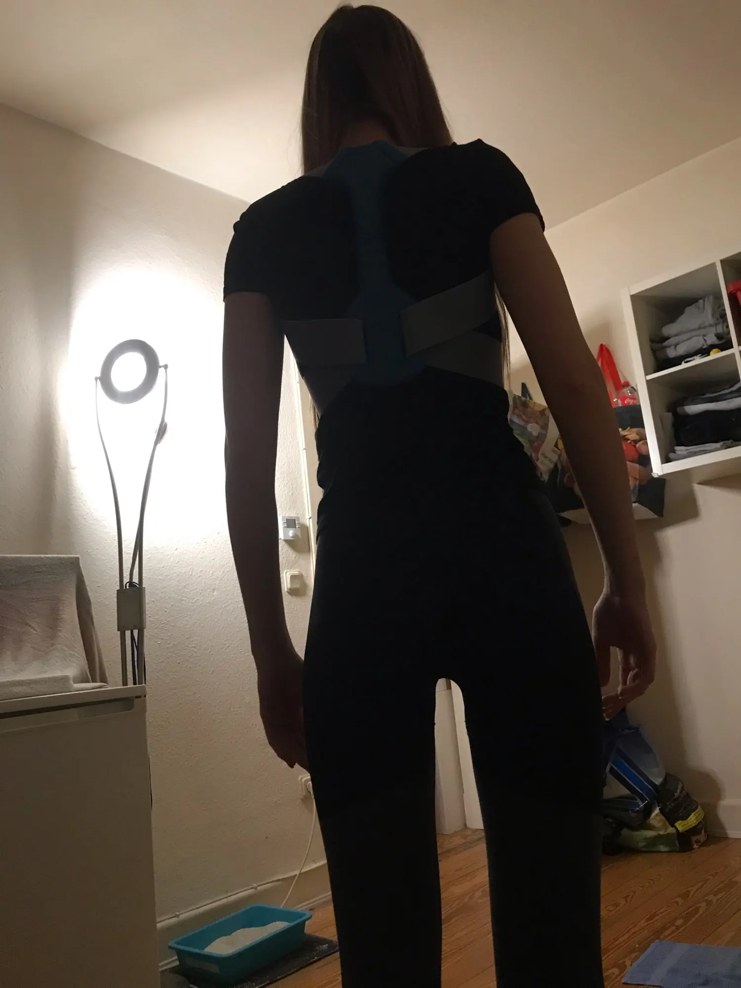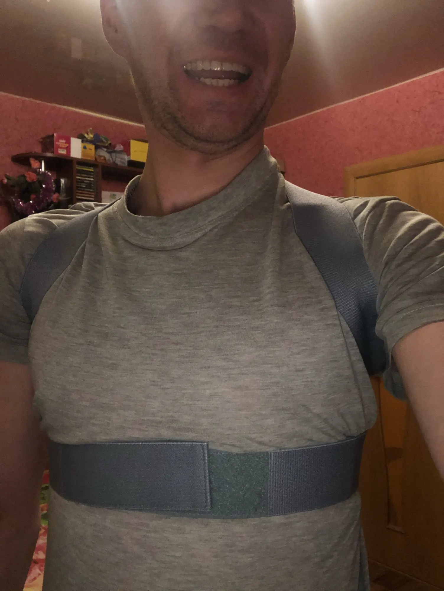 Л на 75 см под грудью великоват, хотя и застегнулся , дома носить буду. Плечи расправляет хорошо, посмотрим, что будет дальше...