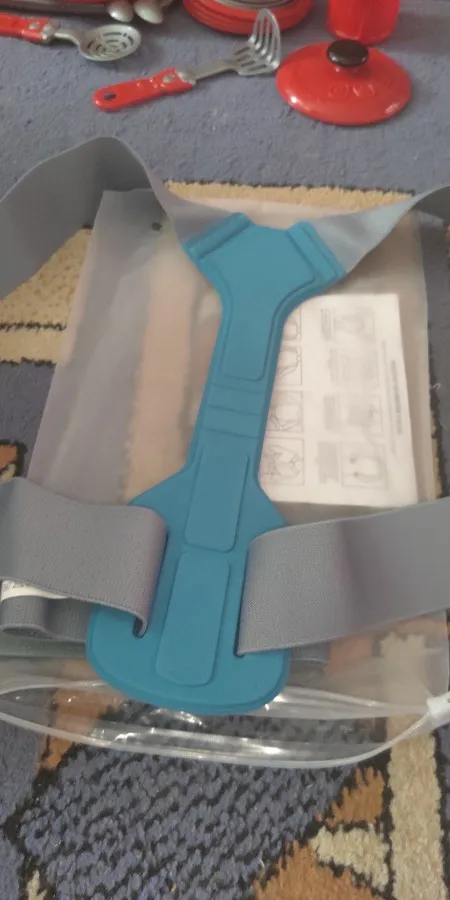 подбирали по размерной сетке, ничего особого в нем нет, просто широкие резинки на липучке спереди и мягкий фиксатор сзади на спине