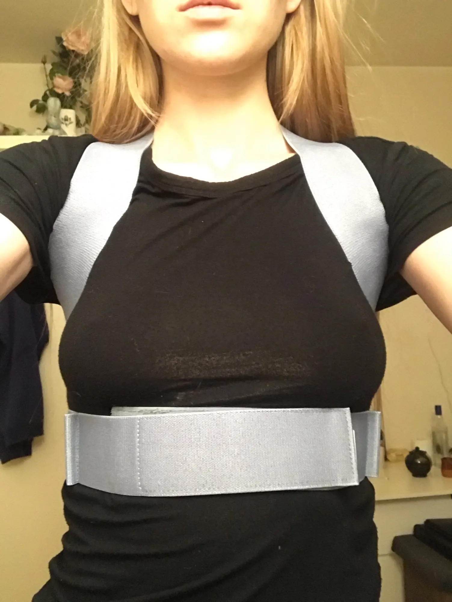 Липучка спереди немного давит, если носить на голый торс. Помогает не сутулится
