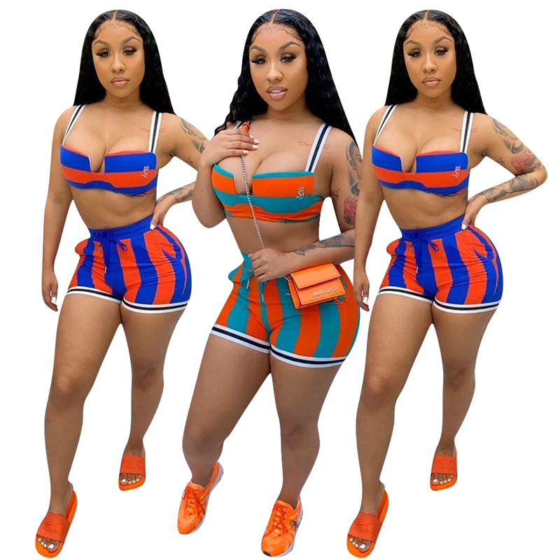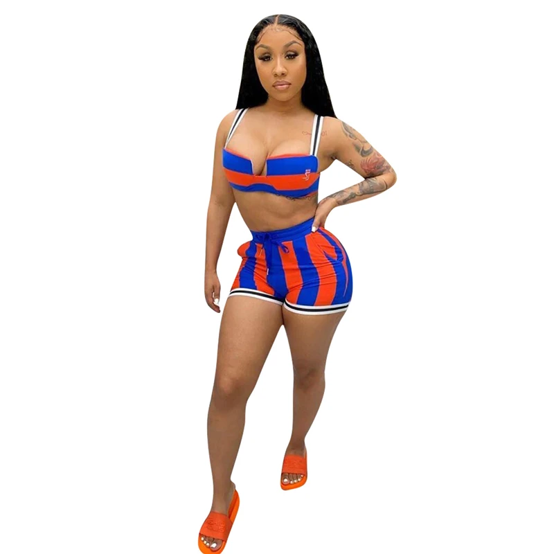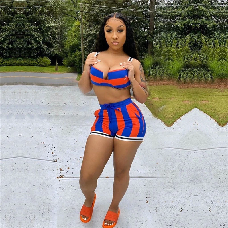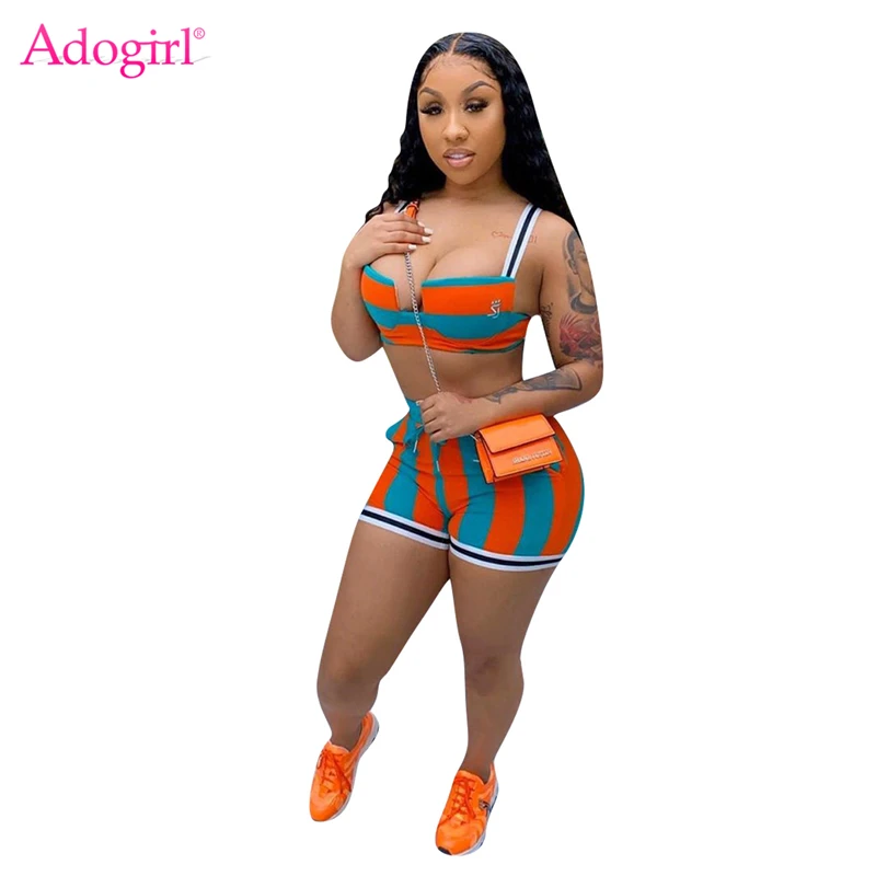 Adogirl женский полосатый комплект из двух предметов без бретелек с тонкими бретельками короткий топ шорты спортивный костюм для фитнеса летний Повседневный сексуальный костюм