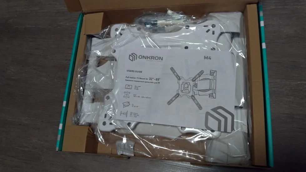 Кронштейн отличный, доставили до дома за неделю. Качество супер, в комплекте много болтов под разные крепления разных телевизоров. Тяжелый старый Sharp держит уверенно. Рекомендую продукцию этого производителя!