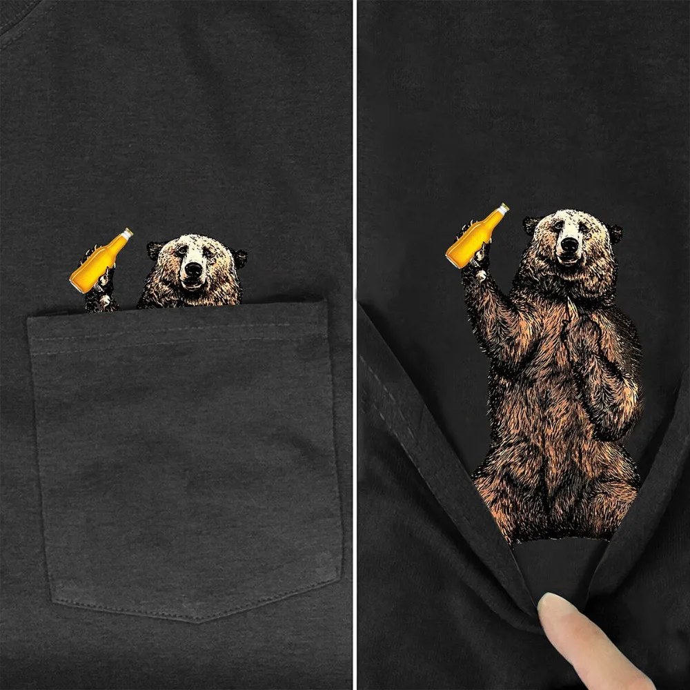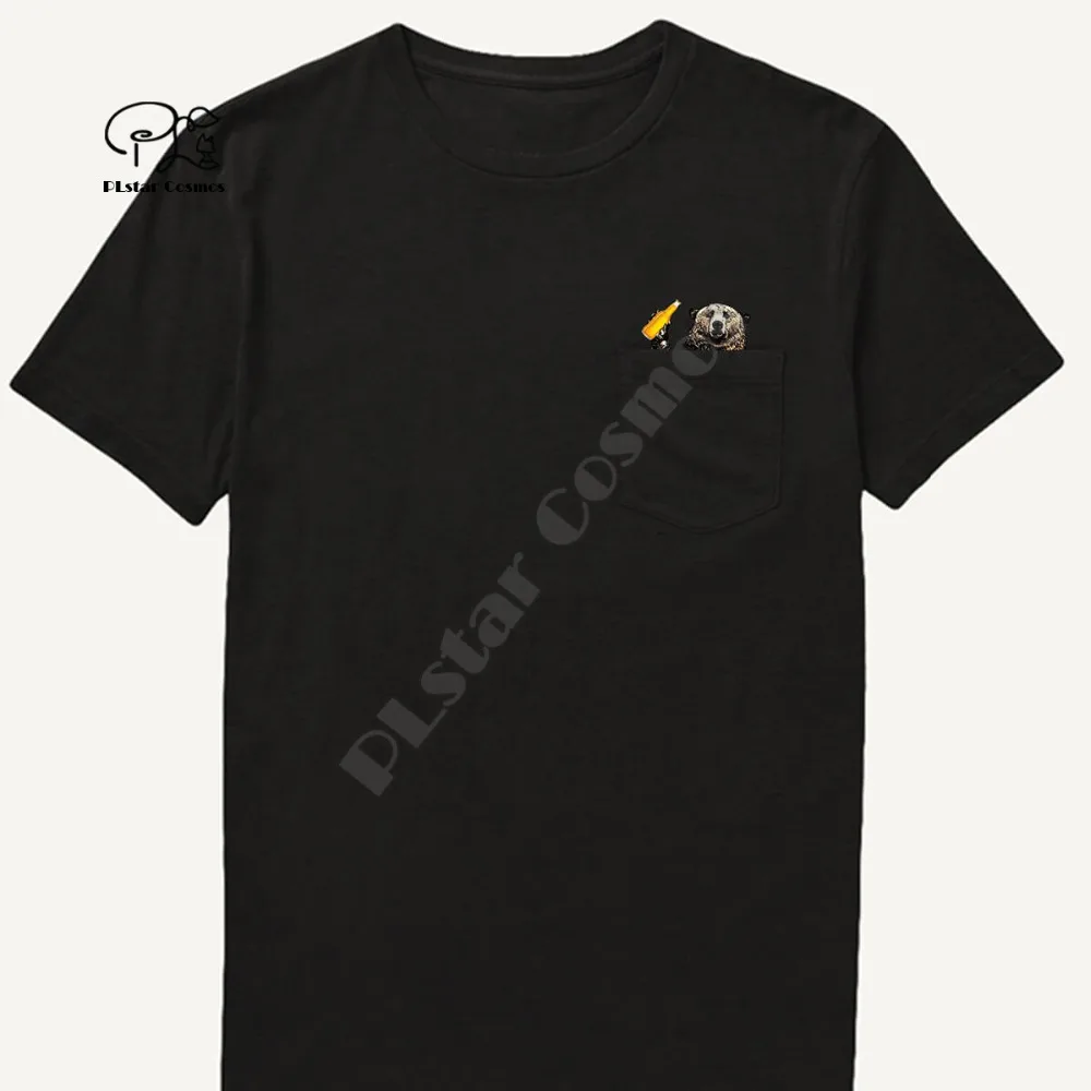 Мужская хлопковая футболка с коротким рукавом, с карманами и мультяшным принтом