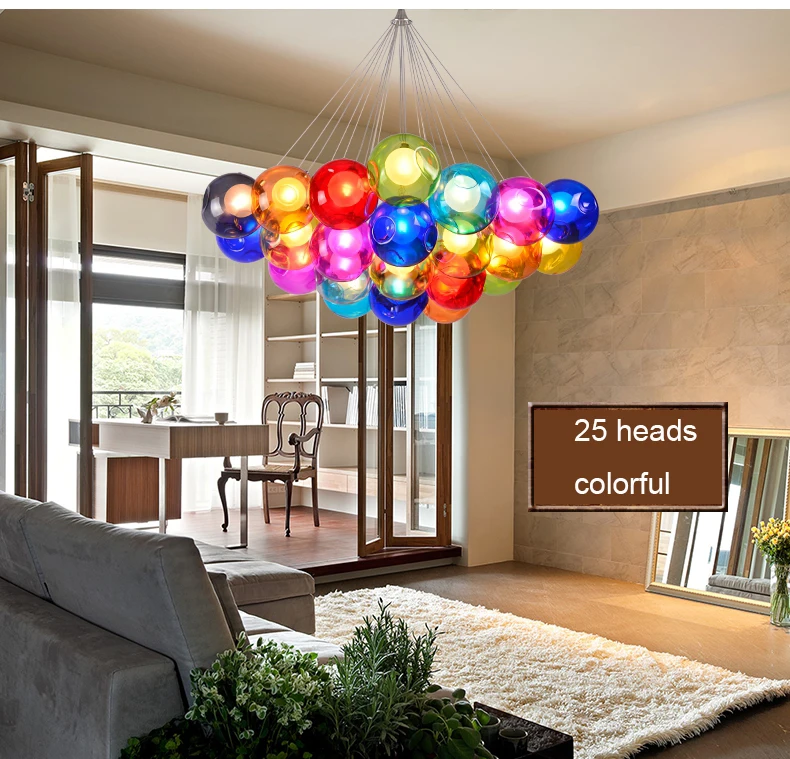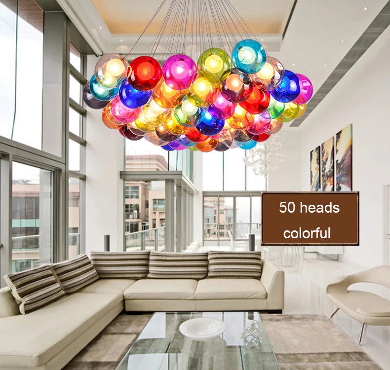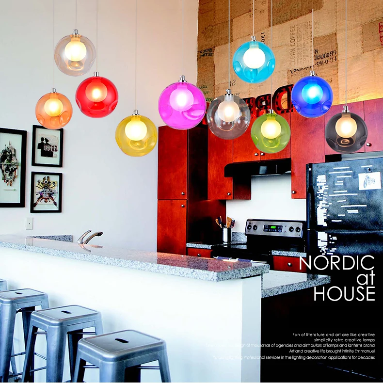 Цветная подвесная стеклянная люстра G4, светодиодный светильник с подвеской, для гостиной, детской комнаты, современный стеклянный шар
