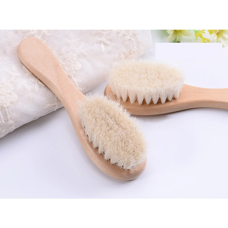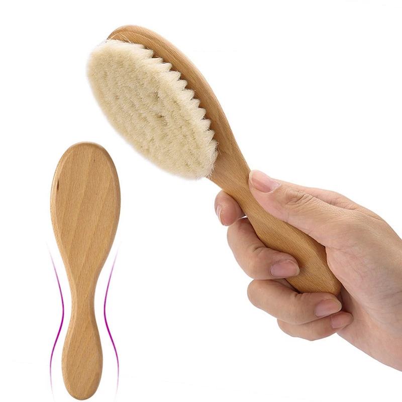 Набор из мягкой детской щетки и расчески, деревянная ручка с натуральной щетиной из козьей шерсти, идеально подходит для новорожденных