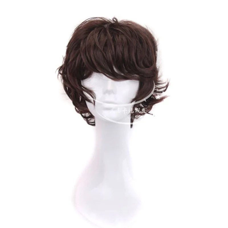 Парик для косплея, короткие каштановые вьющиеся волосы, дазай Осаму