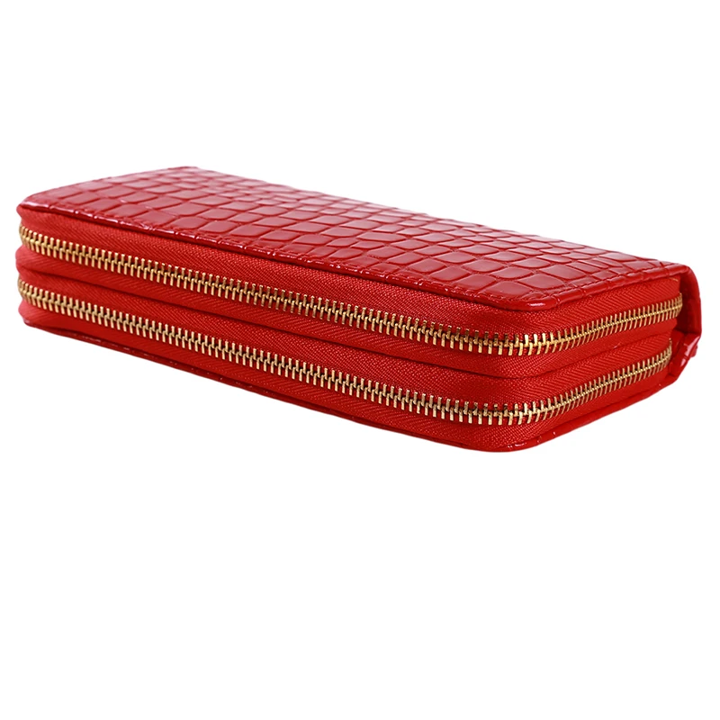 Женские кошельки с двойной молнией, Дамский бумажник из искусственной кожи, модный Женский Длинный дизайнерский кошелек, сумка для телефона, высокое качество, красныйбелыйчерный