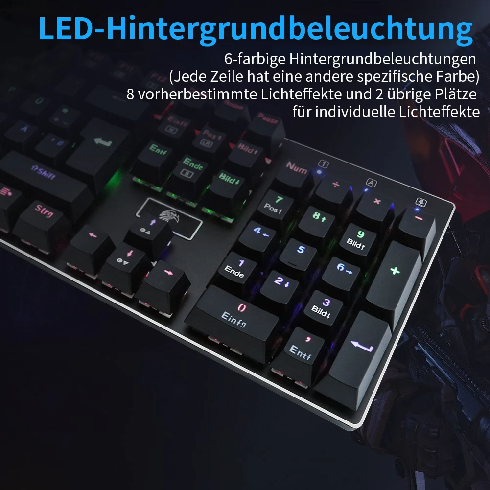 Z-88 Механическая игровая клавиатура, 105 клавиш, Немецкая раскладка QWERTZ, светодиодная подсветка, Игровая клавиатура Outemu Switch, Черная