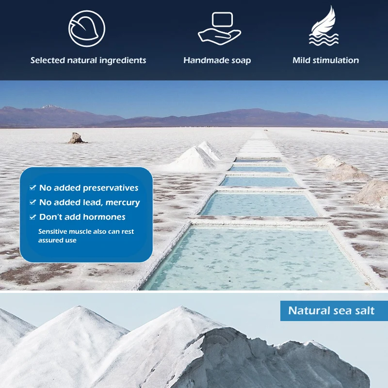 Мыло с морской солью может эффективно удалять Клещи и улучшать проблемы с кожей, вызванные клещами, такими как большие поры, прыщи, угри, жирная кожа и акне.