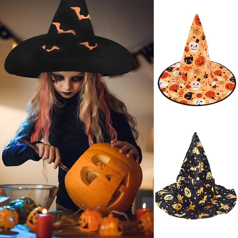 Шапка ведьмы для детей и взрослых, черная или оранжевая шляпа для Х...