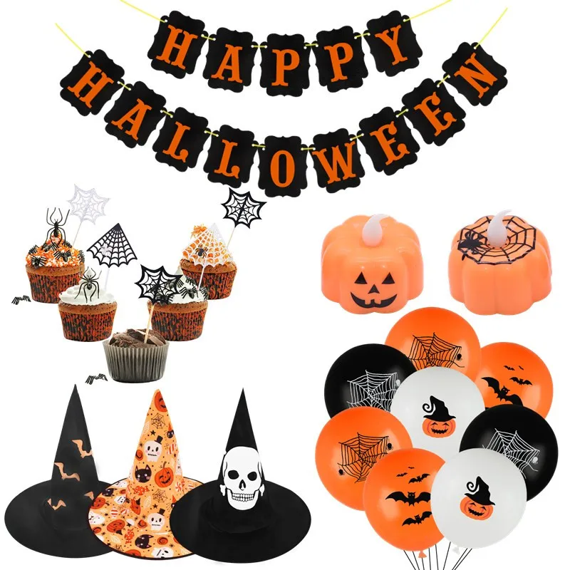 Счастливый Хэллоуин бумажный баннер Паук Паутина торт Топпер узор летучая мышь латексный шар Тыква светильник Хэллоуин Вечеринка Декор поставки