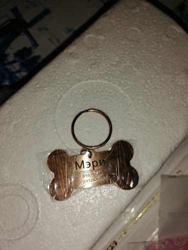 Прикольный. Заказала на пробу одной собаке. Теперь закажу ещё двум. Скажу сразу, колечко тонкое, лучше наверное на мелких собак. Кличка и номер телефона указали все правильно. Продавец общительный