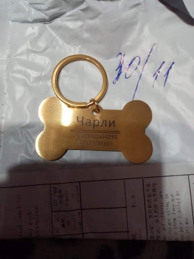 Я в таком восторге! Бирки классные, толщина металла, примерно, 2мм. Заказала бирки для своих кошек, написала продавцу информацию, которую надо нанести на бирки. Заказ выполнен оперативно, всё без ошибок. Заказ был оплачен 03.02.2021г. А сегодня, 18.02.2021г., уже получила. Цена за подобные бирки у меня в городе составила бы не менее 500руб. за каждую, а в данном случае общая стоимость заказа (за шесть бирок!!!) составила в пределах 600руб. Отправлена посылка тоже без задержек, несмотря на китайский новый год. Доставлена Почтой России, тоже довольно оперативно (я приятно удивлена работой нашей почты). Я всем своим знакомым порекомендую обращаться именно к этому продавцу. Большое спасибо.