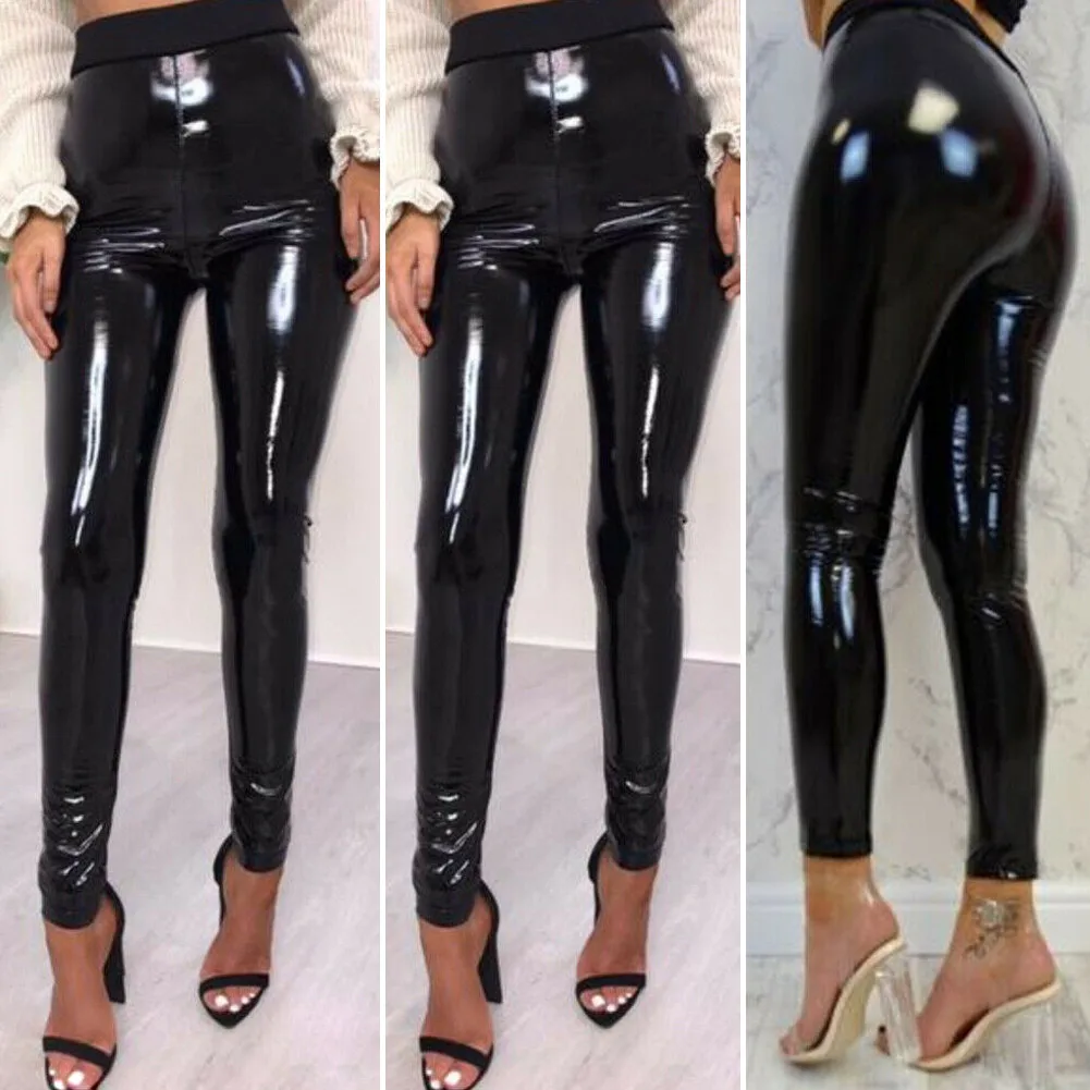 Модные женские виниловые леггинсы из ПВХ с высокой талией, блестящие эластичные кожаные брюки для дискотеки