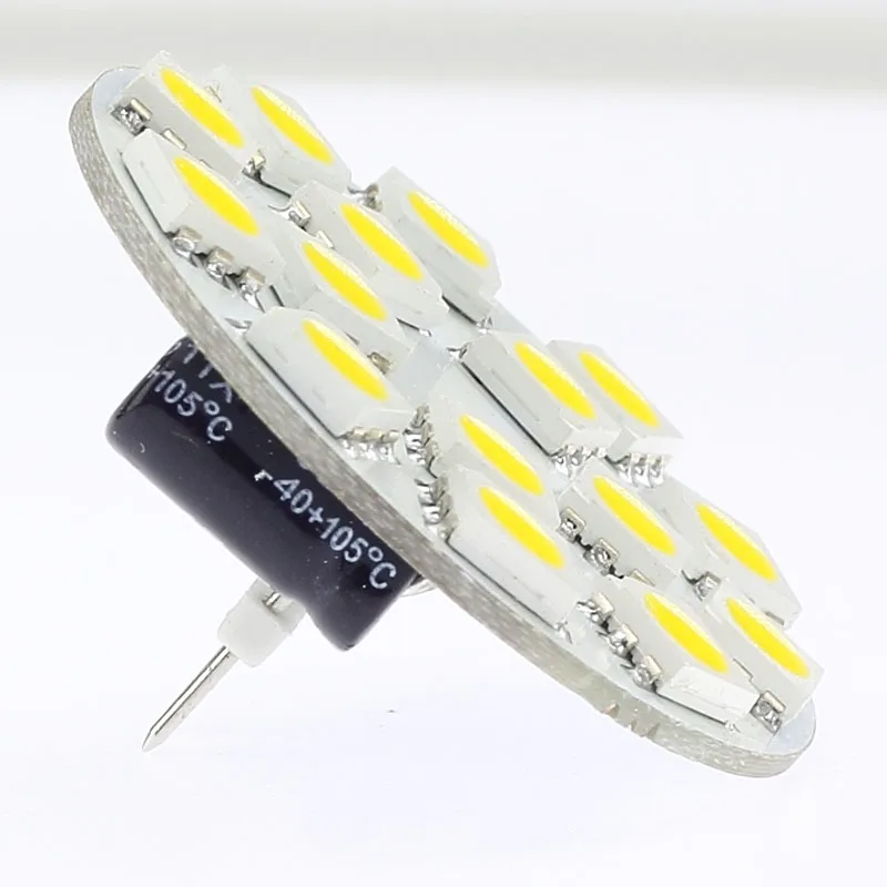 Артикул: G4 светодиодный светильник лампочка Высокомощный Светодиодный точечный светильник, светильник, 3 Вт, высокомощный Светодиодный точечный светильник, светильник, 15 шт. 5050 SMD, светодиодный светильник для замены, 6400k Дневной светильник белый и 3500K теплый белый с G4 фитингом, подходит для стандарта GU53/ MR16 / MR11. 2 Pin, 250-270LM яркость эквивалентна 20 Вт-30 Вт галогену. Также можно использовать d в домах для замены галогенных ламп 12 вольт и 24 вольт, оптимальное использование с драйвером постоянного тока или источником питания переменного тока. Длительный срок эксплуатации: Белый светодиодный До 50000 + часов (5,7 + лет), сэкономить на ваш счет за электричество путем замены их Применение Системы солнечной энергии, ветрогенератор, гидрогенератор Используйте дома при надлежащем напряжении постоянного тока Небольшие домашние проекты. Научные проекты. Электронные приложения. RV, яхты, лодки, корабли, автомобили, тележки Укажите Модель: G4-15-34A Светильник источник света: 15 шт. 5050 SMD Напряжение: Широкое напряжение переменного тока/DC10-30V Размеры: диаметр 34 мм, штифт 14 мм Угол луча: 180 ° Тип основания: G4 Освещение: 250-270лм Потребляемая мощность: 3 Вт Диммируемый, диммер для поверхностного монтажа Цвет: белый, теплый белый, холодный белый, натуральный белый, красный, синий Булавка сзади, двухполярная