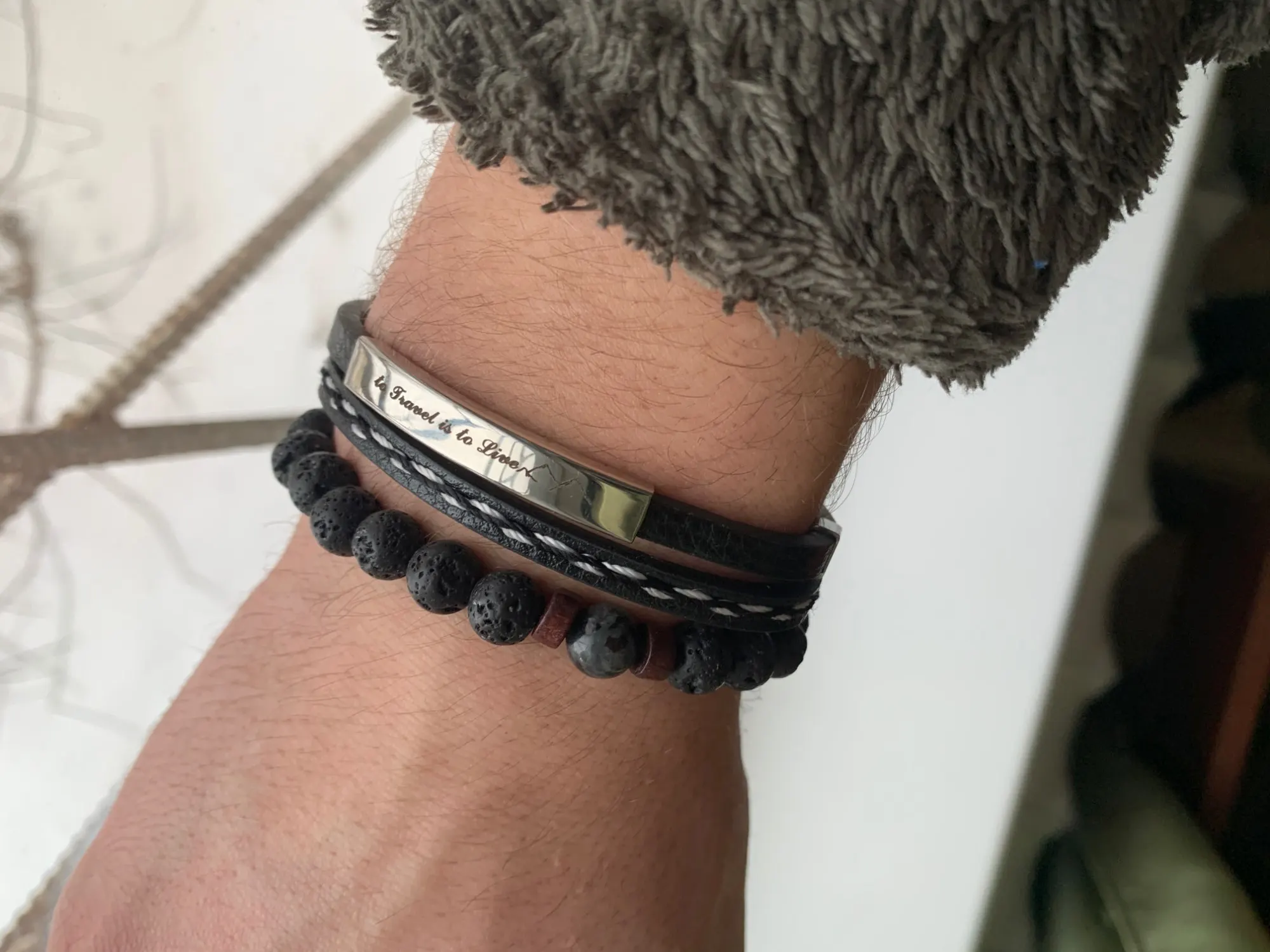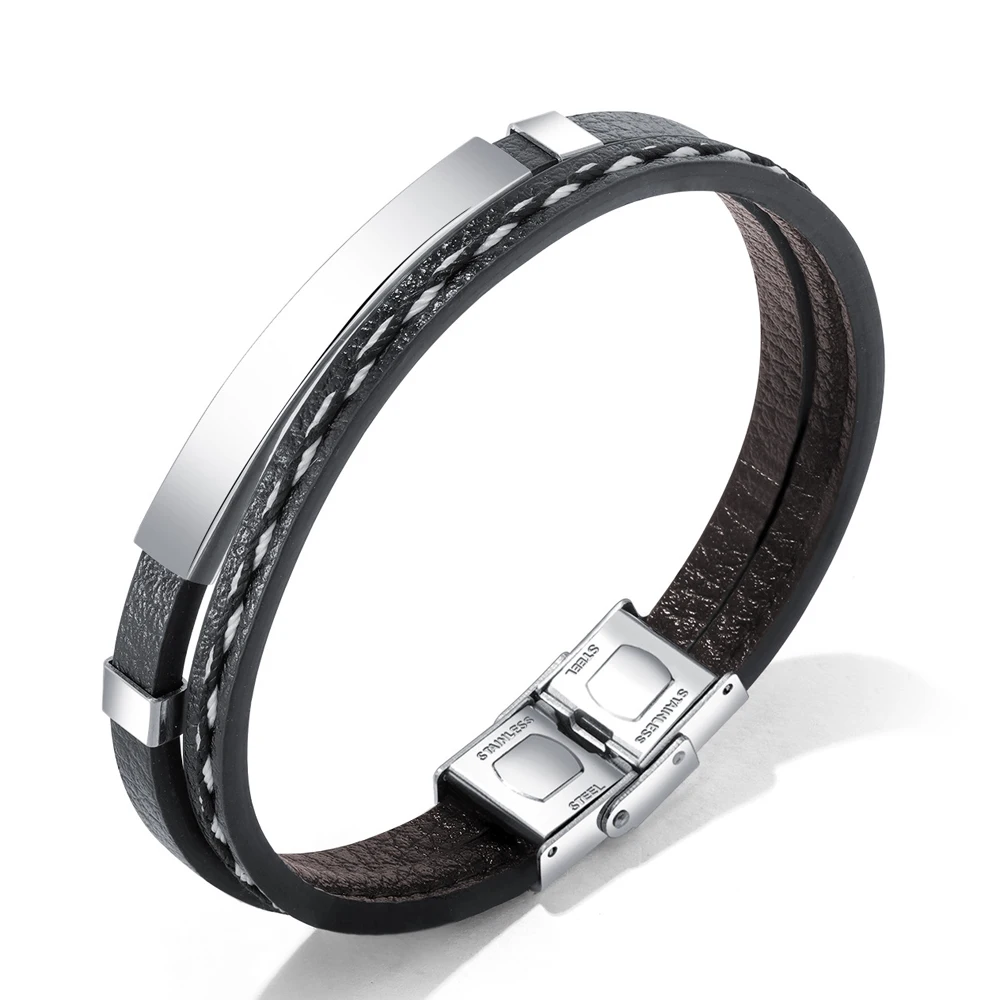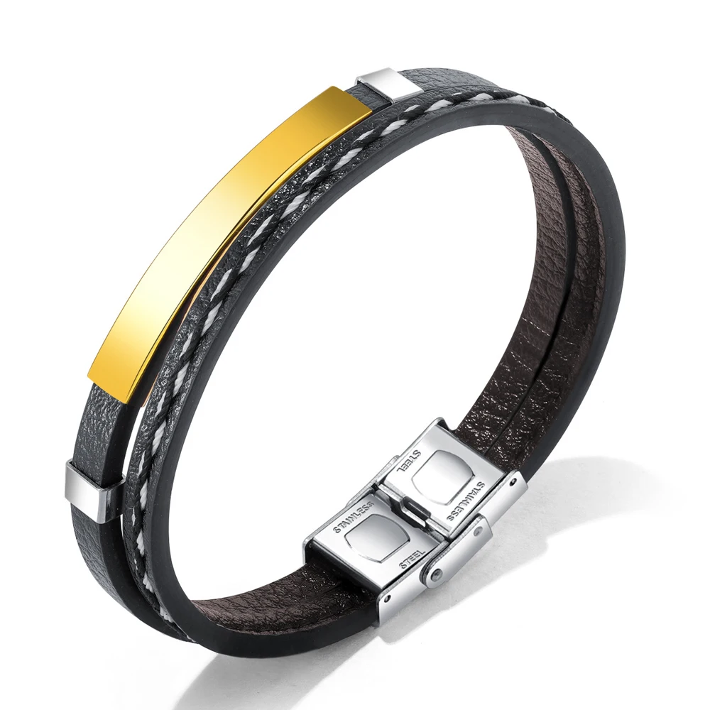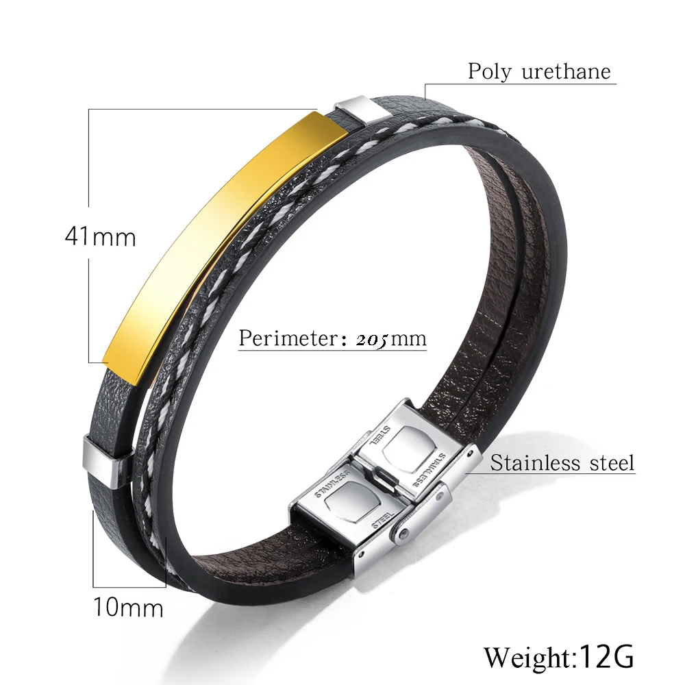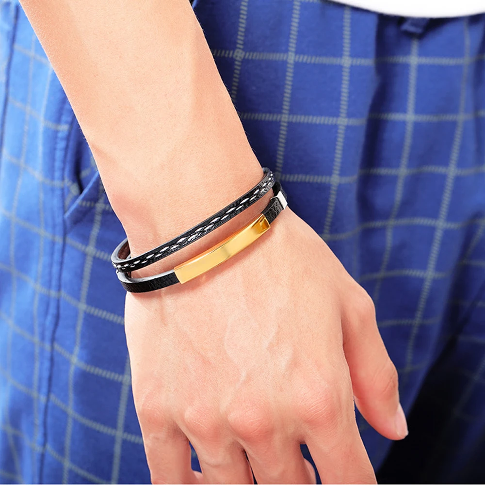 Многослойные кожаные браслеты для мужчин, персонализированный браслет из нержавеющей стали с гравировкой