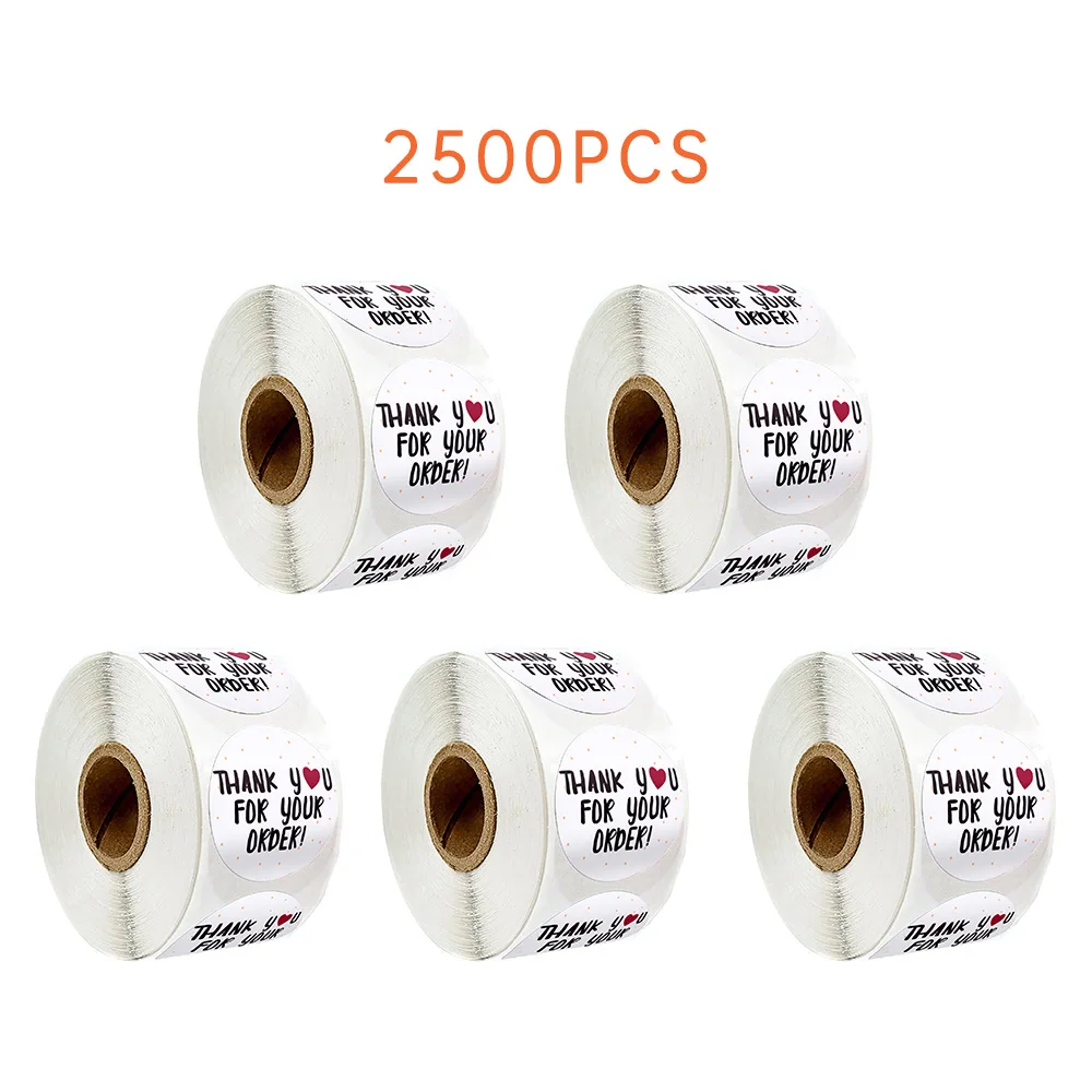 Круглые наклейки с надписью "Спасибо за заказ", в виде сердца, спасибо за покупки в маленьком магазине, белые этикетки, наклейки ручной работы, 2500 шт.