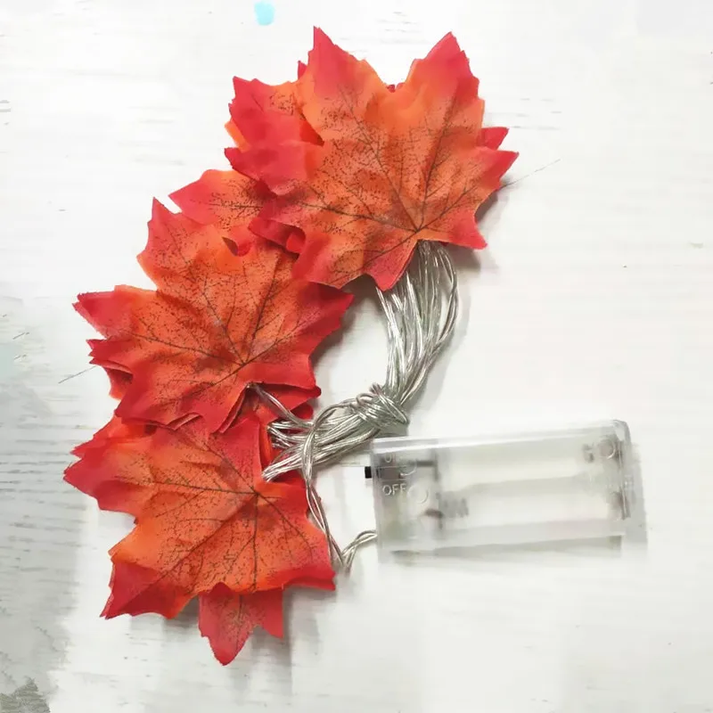 Гирлянда из искусственных осенних кленовых листьев, светодиодная, 2...