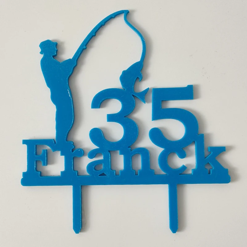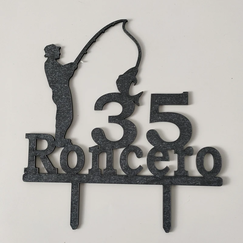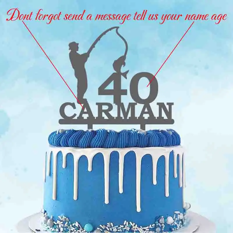 Персонализированный рыболовный Топпер для торта с именем на заказ, Мужской силуэт для рыбалки, тематическая вечеринка на день рождения украшение для торта